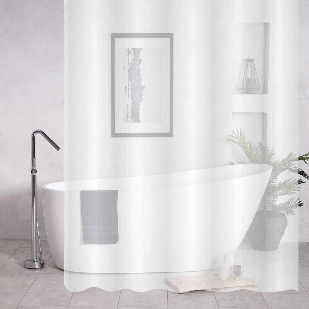 Штора для ванны белая,матовая. Штора подойдет для любого интерьера ванной комнаты, она полупрозрачная и зрительно увеличивает пространство, делает помещение светлым, а мебель и зеркало защищает от брызг. Шторка легкая, но достаточно плотная, водоотталкивающая, имеет стандартные размеры 180 х180 сантиметров. Верхний край шторы уплотнен, для более надежного крепления на кольца, отверстия для колец обрамлены металлическими люверсами из нержавеющей стали. В комплекте прочные пластиковые кольца в количестве 12 штук для крепления к штанге. Изготовлена из современного экологичного материала ПЕВА, который имеет ряд преимуществ перед другими материалами. В отличии от тканевой она абсолютно водонепроницаема и может не сразу приклеиться к ванне, чтобы улучшить прилипание, полейте бортик ванной водой из душевой лейки. В отличие от шторы из ПВХ, не имеет в составе вредных примесей, токсинов и хлора, гипоаллергенна и без запаха, материал, устойчивый к образованию грибка и плесени. Упакована в прочный пакет. Вес 0,37 кг, об