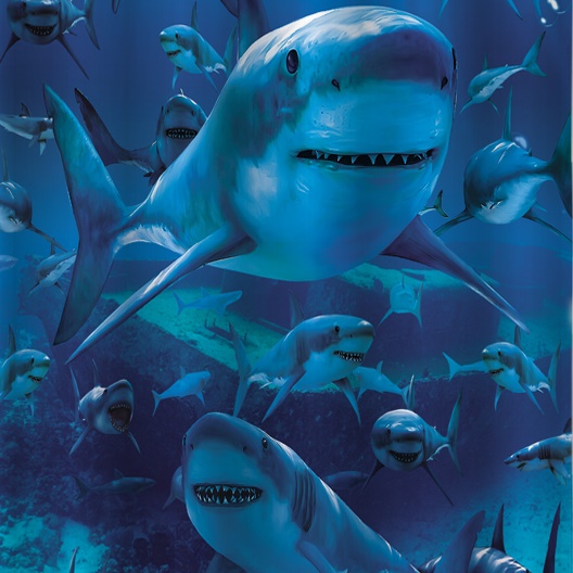 Шторка в ванную комнату, фотопечать, АКУЛА