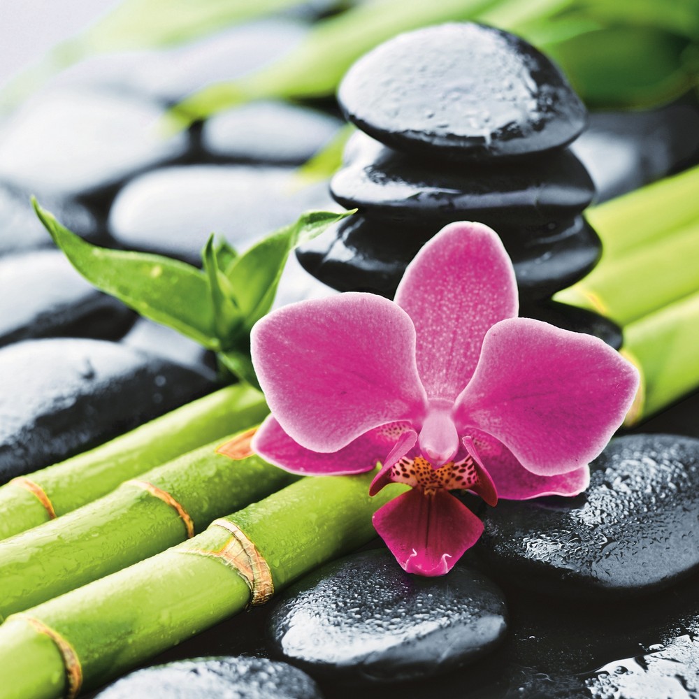 Шторка в ванную комнату, фотопечать, БАМБУК с ЦВЕТКОМ