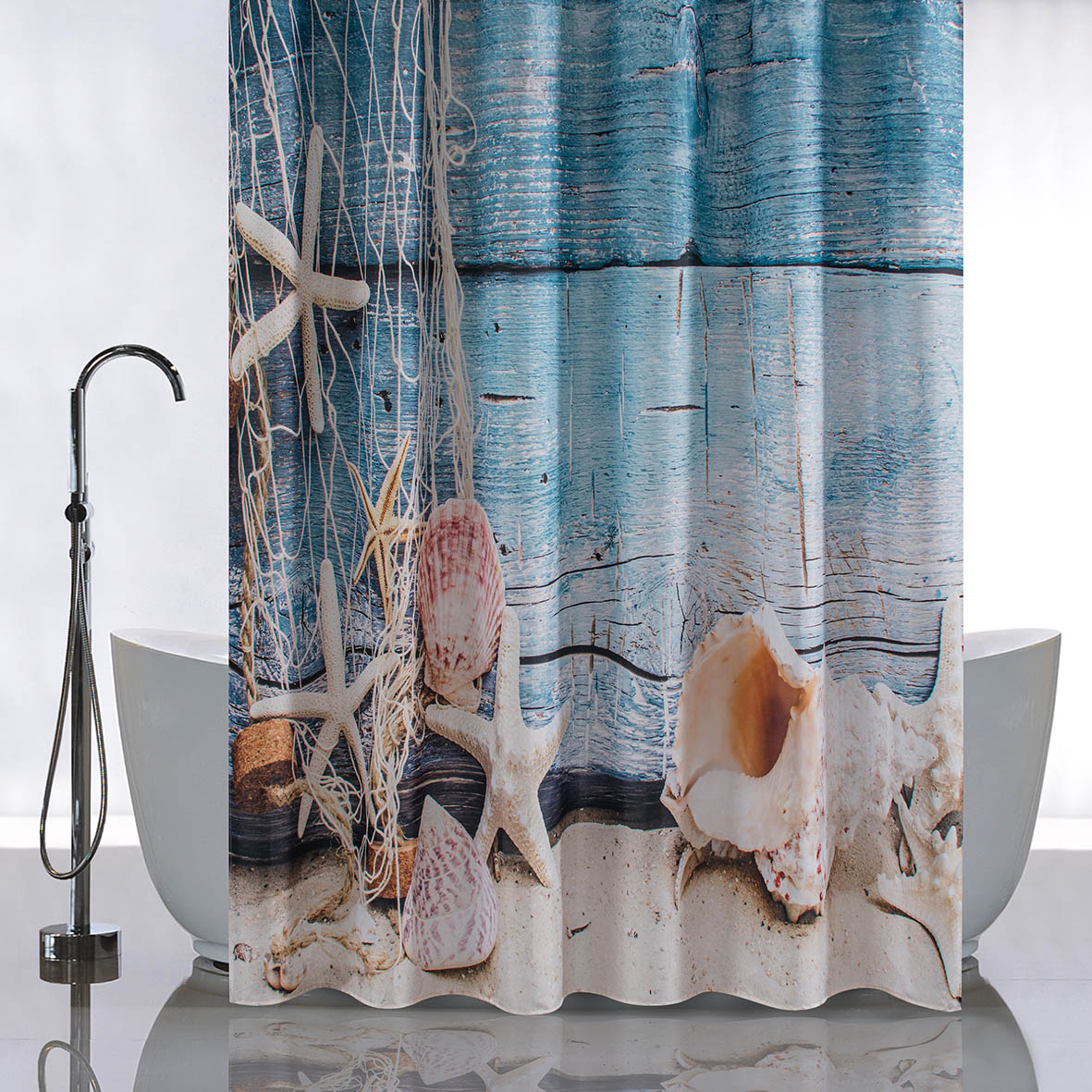 Штора с рисунком морское дно, в ванную комнату, без колец - полиэстэр