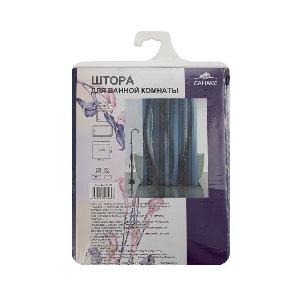 Штора с рисунком, синие разводы, в ванную комнату, без колец - полиэстэр, 180 х 180 см