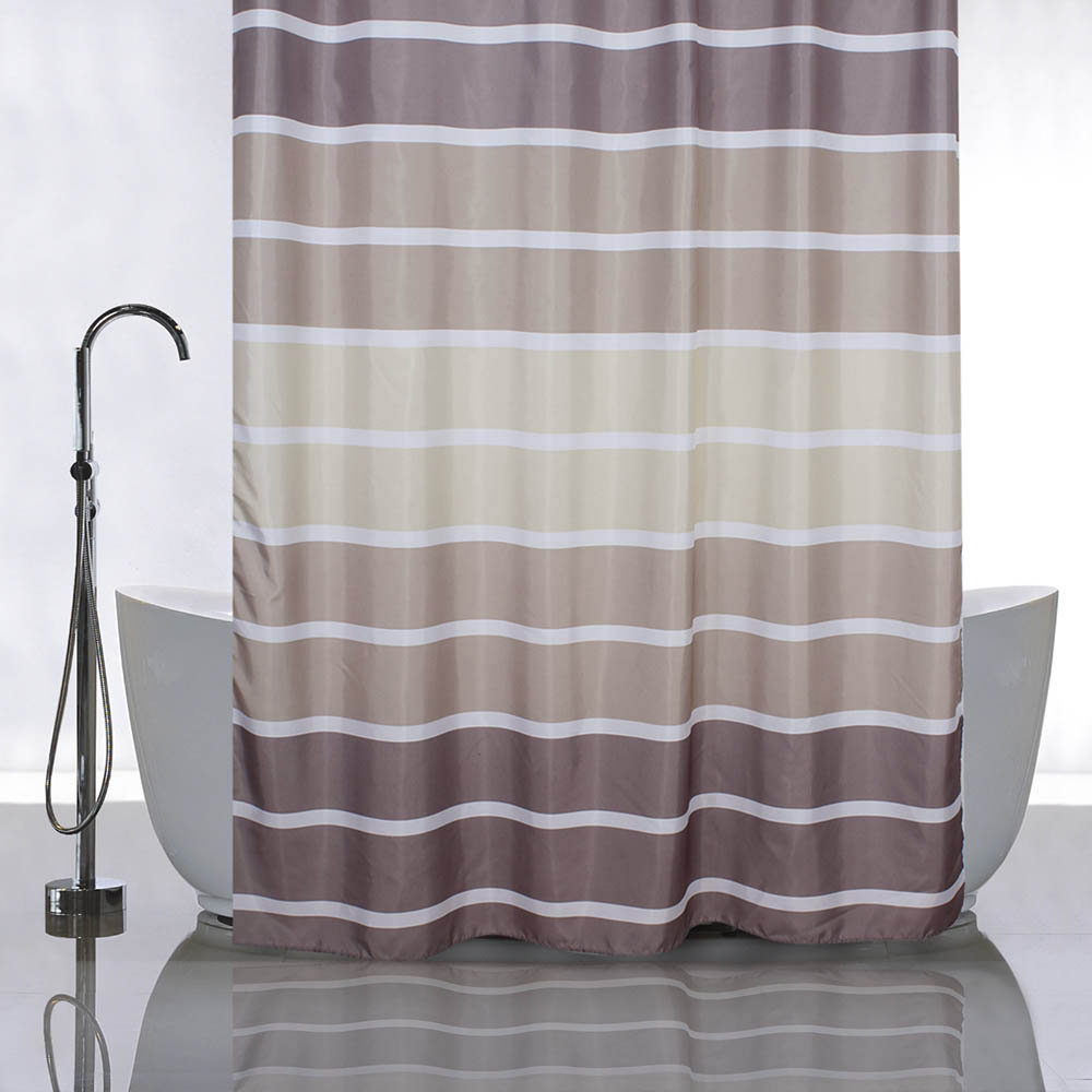 Штора с рисунком, ГОРИЗОНТАЛЬНЫЕ КОРИЧНЕВЫЕ ПОЛОСКИ, в ванную комнату, без колец, полиэстэр