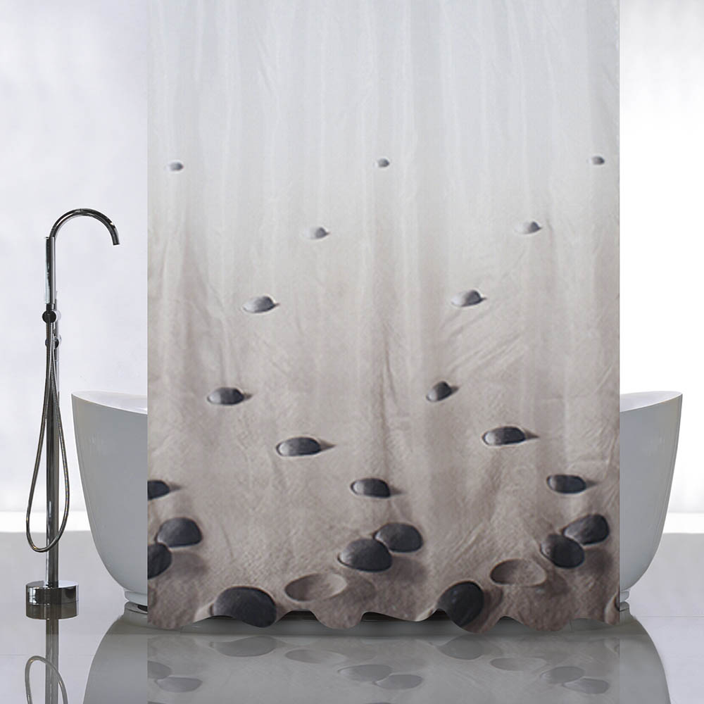 Штора с рисунком, КАМНИ НА ПЕСКЕ, в ванную комнату, без колец, полиэстэр
