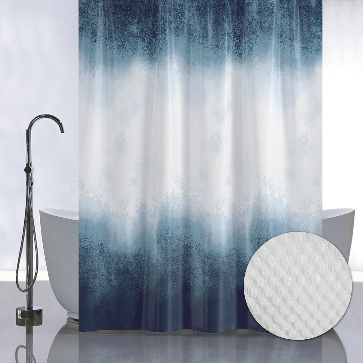 Штора с рельефным теснением, принт МОРСКАЯ ВОЛНА, в ванную комнату, без колец, полиэстер/микрофибра, 180х180 см
