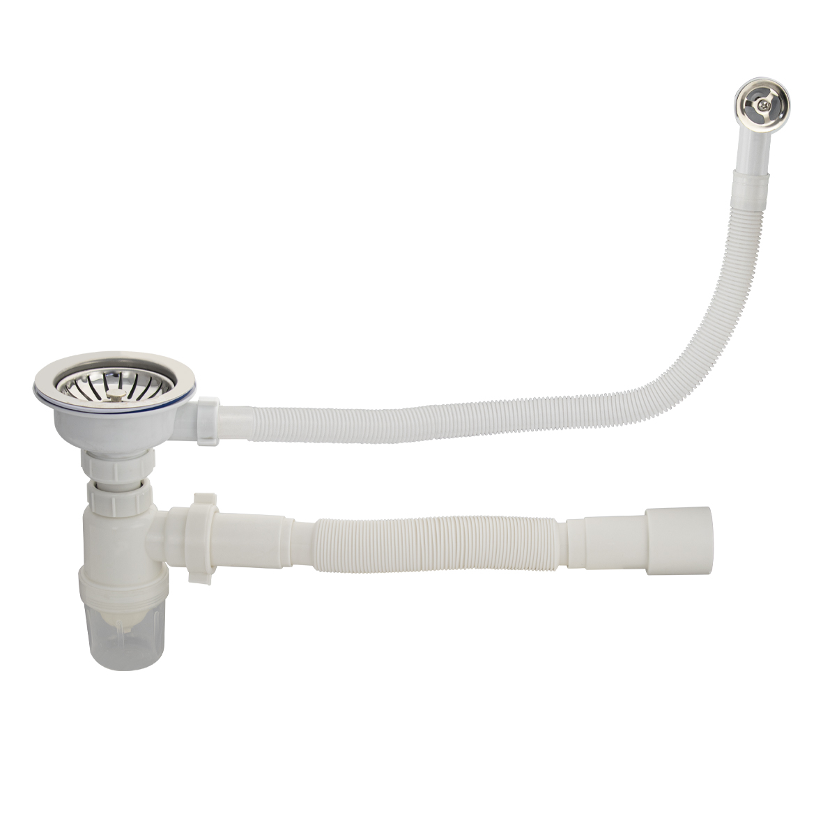 Сифон для кухонных моек из камня и композитных материалов, с диаметром сливного отверстия 90 мм, с переливом. С разборным выпуском и нержавеющей решеткой, из высокопрочного пластика АБС с затвором от проникновения запахов. Форма сифона позволяет поддерживать хорошую пропускную способность слива сточной воды, выполняя свою главную функцию - формирование гидрозатвора для отсечения неприятных запахов из канализации. Конструкция позволяет легко разобрать и почистить сифон в случае засорения, достать случайно упавшие в слив раковины мелкие ценные вещи. Сифон прост в установке. Габаритные размеры: высота 240 мм, верхняя крышка 112 мм. Комплект: сифон. перелив, уплотнения. Вес - 0,67 кг, объём - 0,00726 м3.
