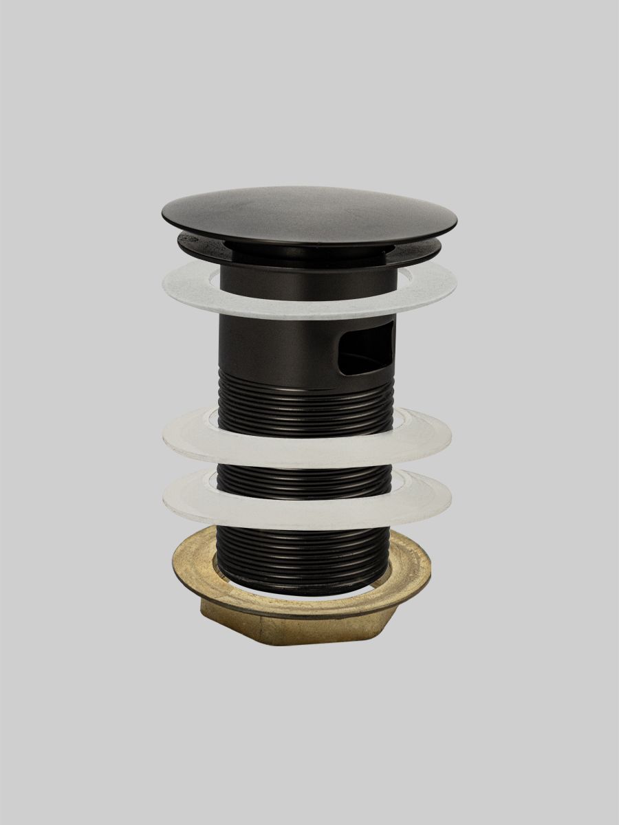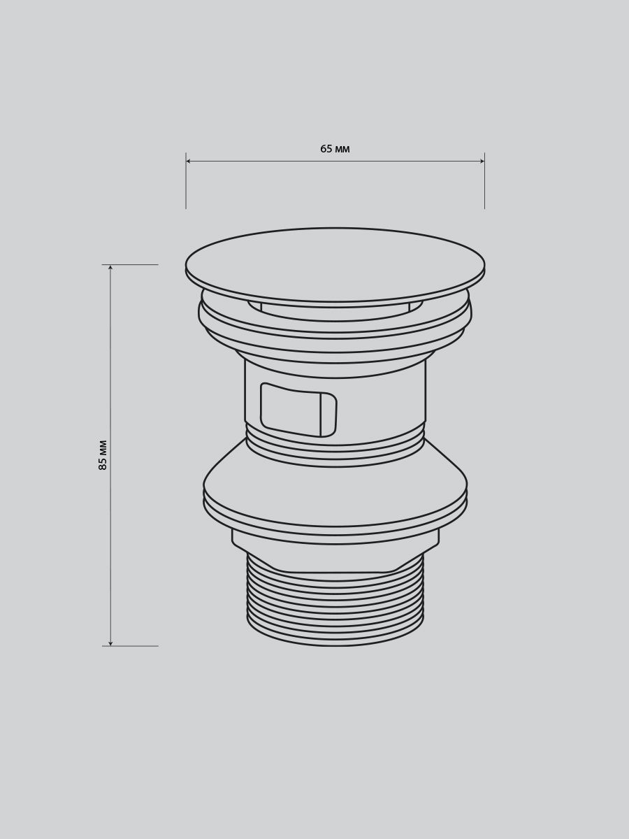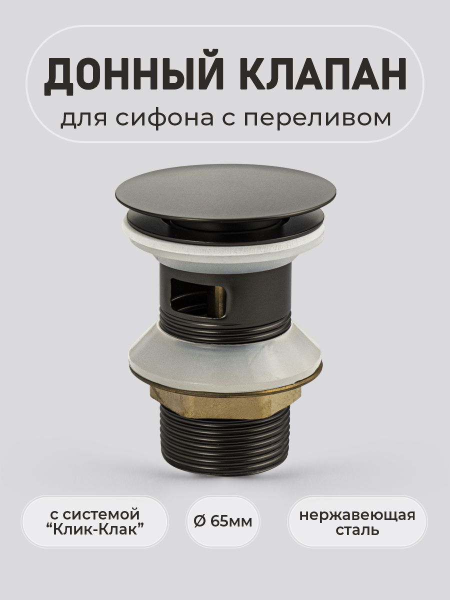 Донный клапан из нержавеющей стали с переливом, цвет графит, представляет собой несложный механизм, который устанавливается непосредственно в сливное отверстие раковины и работает как пробка, с системой “Клик-Клак” 1 ¼' и с большой заглушкой клапан надежно закроет сливное отверстие раковины. Нужно использовать для умывальников с переливом. Габаритные размеры: высота 85 мм, диаметр 65 мм. Вес - 0,25 кг, объём - 0,00053 м3.