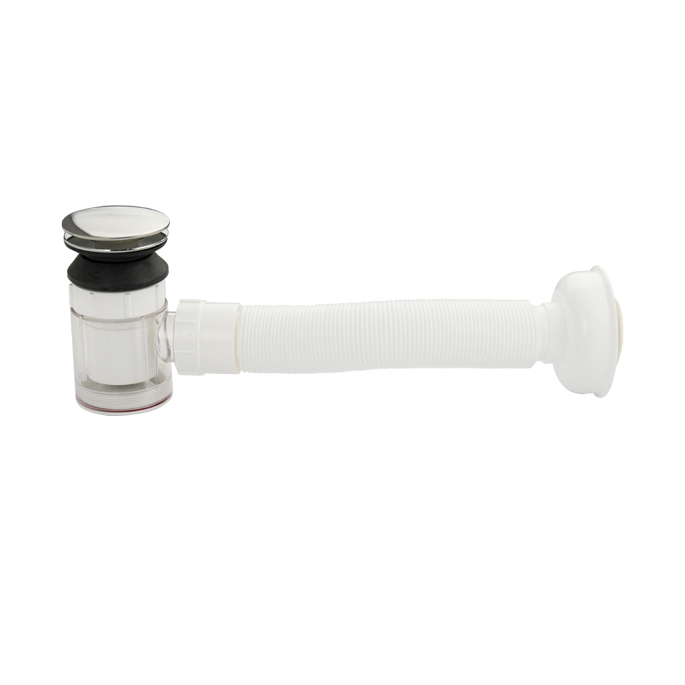 Сифон для кухонных моек и раковин, белый, бутылочного типа. Сифон с разборным выпуском, из высокопрочного пластика АБС с затвором от проникновения запахов. Сифон комплектуется металлическим хромированным выпуском системы "клик-клак" из латуни. Форма сифона позволяет поддерживать хорошую пропускную способность слива сточной воды, выполняя свою главную функцию - формирование гидрозатвора для отсечения неприятных запахов из канализации. Конструкция позволяет легко, без демонтажа, снять отстойник (стакан) и почистить сифон в случае засорения, достать случайно упавшие в слив раковины мелкие ценные вещи. Сифон прост в установке, Габаритные размеры: высота стакана 130 мм, верхняя крышка 60 мм. Комплект: сифон. перелив, уплотнения. Вес - 0,120 кг, объём - 0,00094 м3.