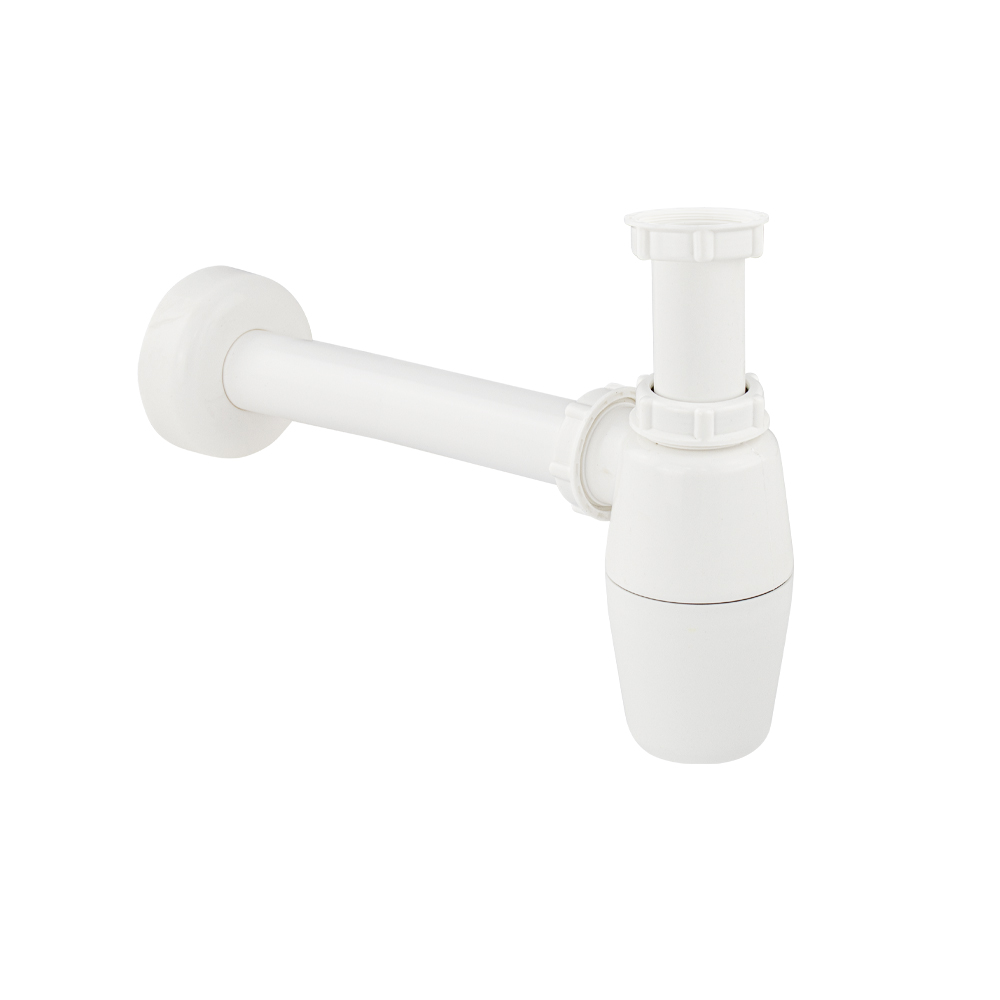 Сифон для раковины, белый, бутылочного типа. С разборным выпуском без горловины, из высокопрочного пластика АБС с бутылочным гидрозатвором от проникновения запахов. Форма сифона позволяет поддерживать хорошую пропускную способность слива сточной воды, выполняя свою главную функцию - формирование гидрозатвора для отсечения неприятных запахов из канализации. Конструкция позволяет легко, без демонтажа, снять отстойник (стакан) и почистить сифон в случае засорения, достать случайно упавшие в слив раковины мелкие ценные вещи. Сифон прост в установке. Габаритные размеры: длина мм, высота стакана мм, верхняя крышка мм. Комплект: сифон, уплотнения. Вес - 0,3 кг, объём - 0,0018 м3.