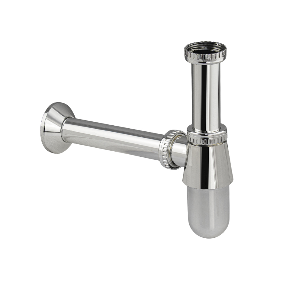 Сифон для раковины, хромированный, бутылочного типа. С разборным выпуском без горловины, из высокопрочного пластика АБС с бутылочным гидрозатвором от проникновения запахов. Форма сифона позволяет поддерживать хорошую пропускную способность слива сточной воды, выполняя свою главную функцию - формирование гидрозатвора для отсечения неприятных запахов из канализации. Конструкция позволяет легко, без демонтажа, снять отстойник (стакан) и почистить сифон в случае засорения, достать случайно упавшие в слив раковины мелкие ценные вещи. Сифон прост в установке. Габаритные размеры: длина мм, высота стакана мм, верхняя крышка мм. Комплект: сифон, уплотнения. Вес - 0,2 кг, объём - 0,00176 м3.
