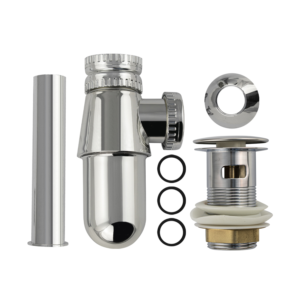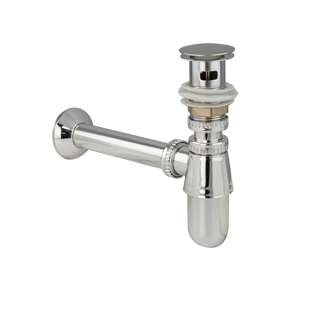 Сифон для раковины из высокопрочного АБС пластика, хромированный, с системой "Клик-Клак" это эстетичное и функциональное устройство для подключения раковины к системе канализации. Бутылочная модель изготовлена из пластика, что обуславливает ее высокую прочность и долговечность. Она устойчива к перепаду температур, поэтому в раковину можно сливать кипяток. Хромированная поверхность сохраняет зеркальный блеск даже после длительной эксплуатации, поверхность не требует особого ухода – достаточно просто протереть. Изделие комплектуется гофрированной трубой с выходом для канализации 50 мм. Габаритные размеры: высота 250 мм, длина 235 мм, диаметр 60 мм. Вес - 0,4 кг, объём - 0,00176 м3