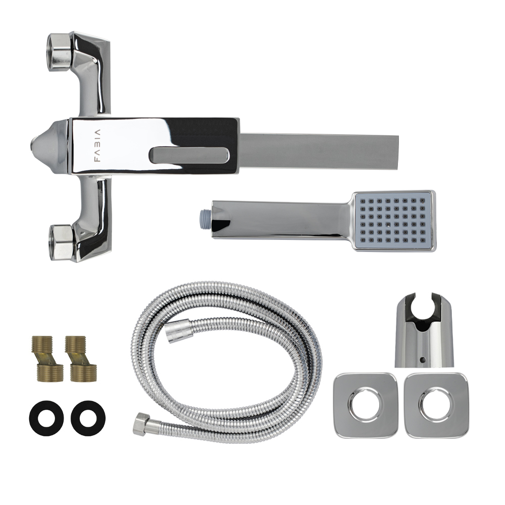 Смеситель хромированный в ванную / душевую комнату с длинным, плоским изливом, тяжёлый, массивный квадратный корпус, шаровый, с дивертором м/к на корпусе, ручка с прорезью. Материал изготовления — ЦАМ (цинк-алюминий-медь) + нержавеющая сталь. Картридж d = мм, литая ручка, аэратор для экономии воды, чашки и эксцентрики из нержавеющей стали. Габаритные размеры: ширина 150 мм, высота корпуса 105 мм, длина излива 300 мм, душевая лейка 210 мм, шланг 150 см. Вес - 1,8 кг, объём - 0,00508 м3. В комплекте паспорт, корпус с изливом, дивертор, душевая лейка, шланг, кронштейн, комплект крепежа и прокладок.
