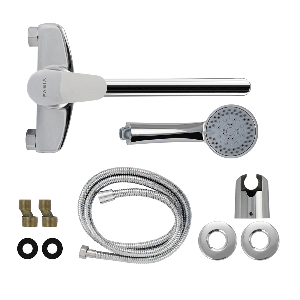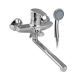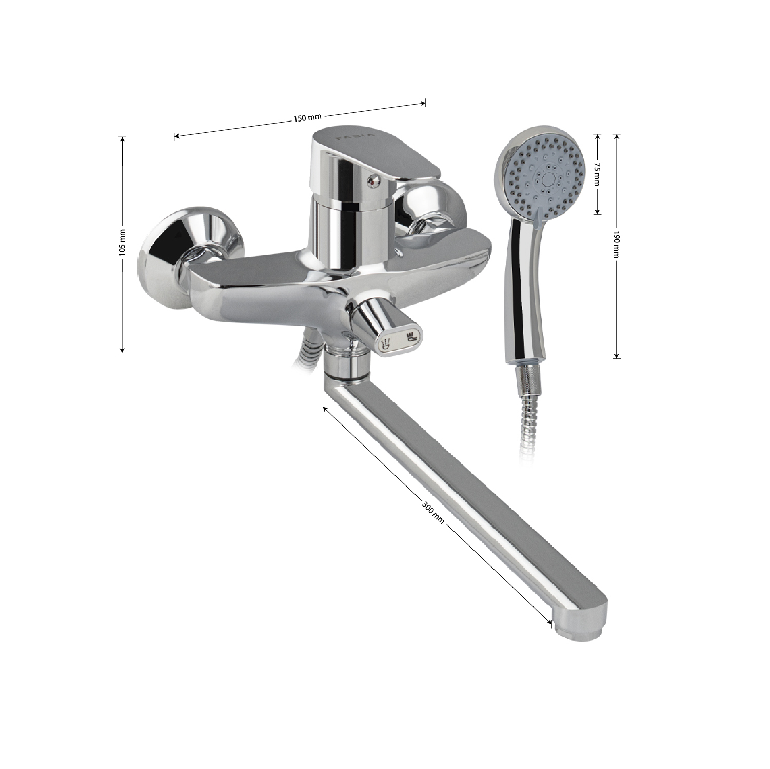 Смеситель хромированный в ванную / душевую комнату с длинным, плоским изливом, тяжёлый, массивный корпус, шаровый, с дивертором м/к на корпусе. Материал изготовления — ЦАМ (цинк-алюминий-медь). Картридж d = мм, ручка с прорезью, аэратор для экономии воды, чашки и эксцентрики из нержавеющей стали. Габаритные размеры: ширина мм, высота корпуса мм, длина излива мм, душевая лейка d = мм, шланг см. Вес - кг, объём - м3. В комплекте паспорт, корпус с изливом, дивертор, душевая лейка, шланг, кронштейн, комплект крепежа и прокладок.