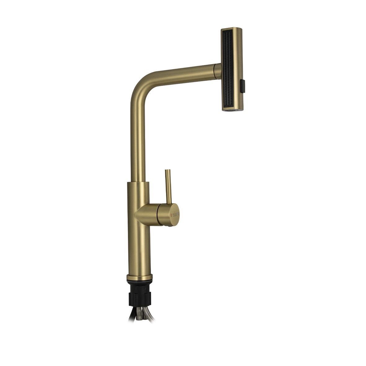 Смеситель для кухонной мойки и раковин, вытяжной излив - лейка с переключением режимов подачи воды, литой матовый корпус, из нержавеющей стали, цвет матовое золото, шаровый. Крепление резьба - гайка, картридж d = 35 мм, ручка литая. Аэратор для экономии воды. Такая модель может использоваться на домашней кухне, на даче, в медицинских учреждениях и общественных местах. Габаритные размеры: высота 450 мм, длина 230 мм, посадочное седло 45 мм, длина резьбы 50 мм. Вес - 1,85 кг, объём - 0,01 м3. В комплекте паспорт, корпус с изливом, подводка 1/2, крепеж, набор прокладок.