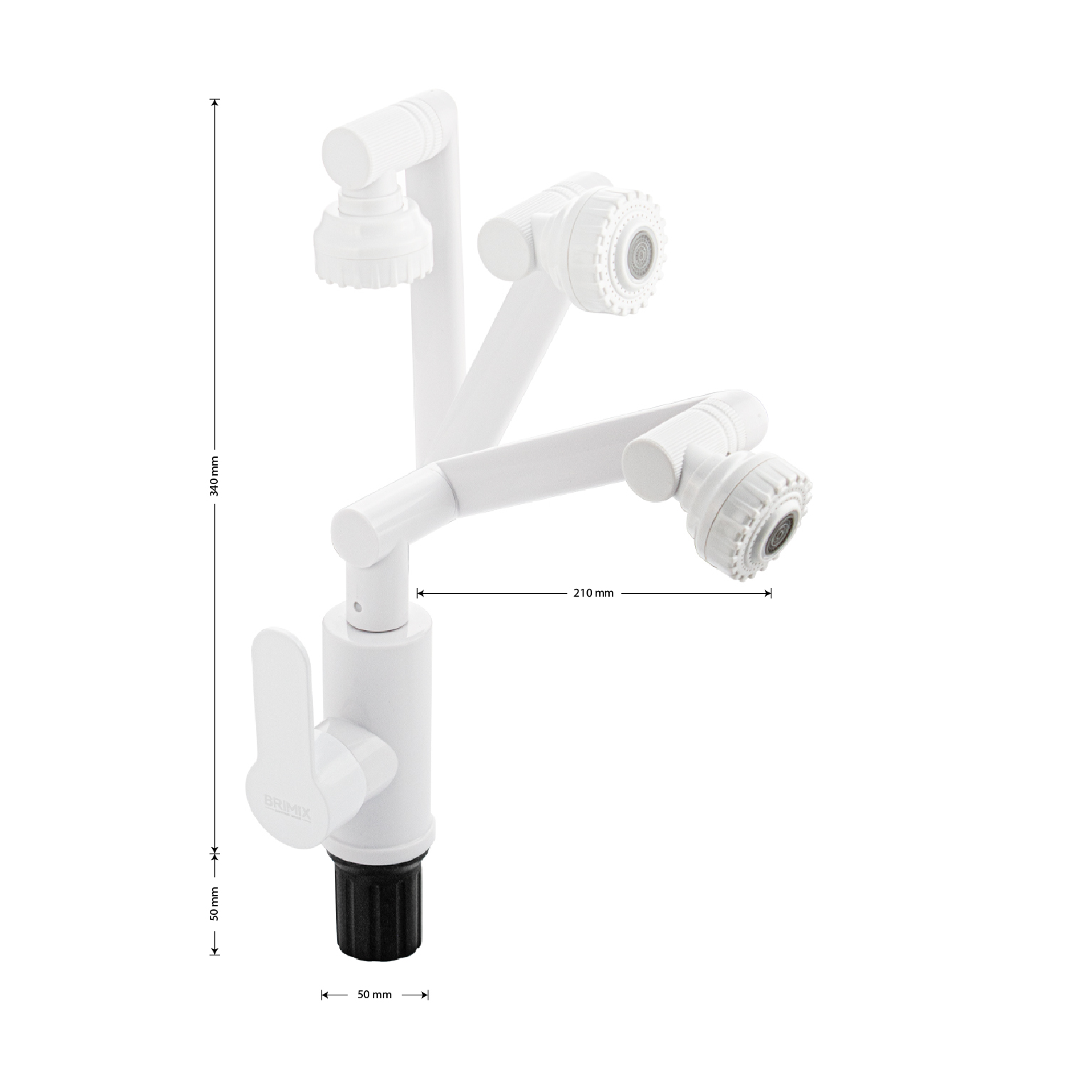 Смеситель для кухонной мойки и раковины, белый, с поворотным изливом и аэратором, шаровый. Из высокопрочного пластика АБС. Крепление резьба - гайка, картридж d = 40 мм. Аэратор для экономии воды. Габаритные размеры: высота 340 мм, длина 210 мм, диаметр посадочного седла 50 мм, длина резьбы 50 мм, длина подводки 500 мм. Вес - 0,84 кг, объём - 0,003 м3. В комплекте паспорт, корпус, подводка 1/2, крепеж, набор прокладок.