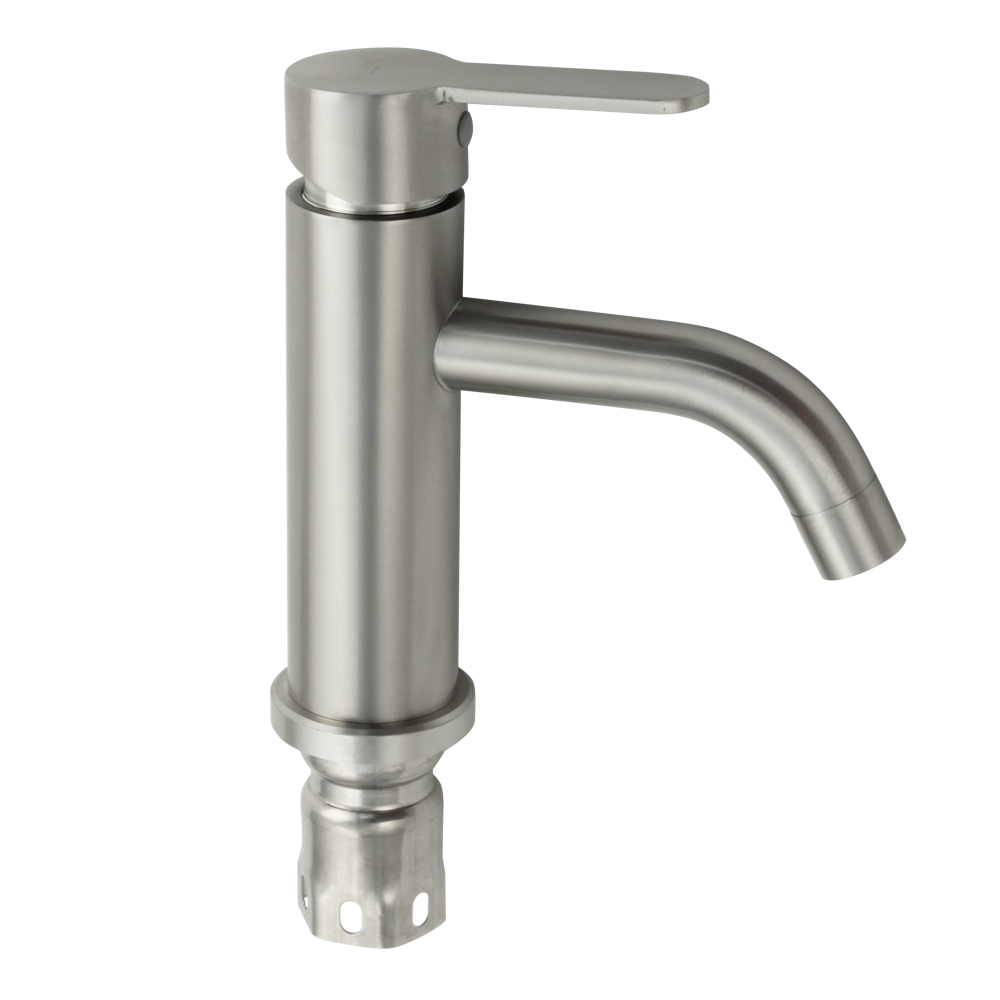 Смеситель для раковины, матовый литой корпус, из нержавеющей стали марки SUS 304, с коротким литым изогнутым изливом, литая ручка, шаровый. Крепление резьба - гайка, картридж d = 35 мм. Аэратор для экономии воды. Такая модель может использоваться на домашней кухне, на даче, в медицинских учреждениях и общественных местах. Габаритные размеры: высота 175 мм, длина 150 мм, длина излива 110 мм, диаметр посадочного седла 53 мм, длина резьбы 60 мм, длина подводки 450 мм. Вес - 1,000 кг, объём - 0,00308 м3. В комплекте паспорт, корпус, подводка 1/2, крепеж, набор прокладок.