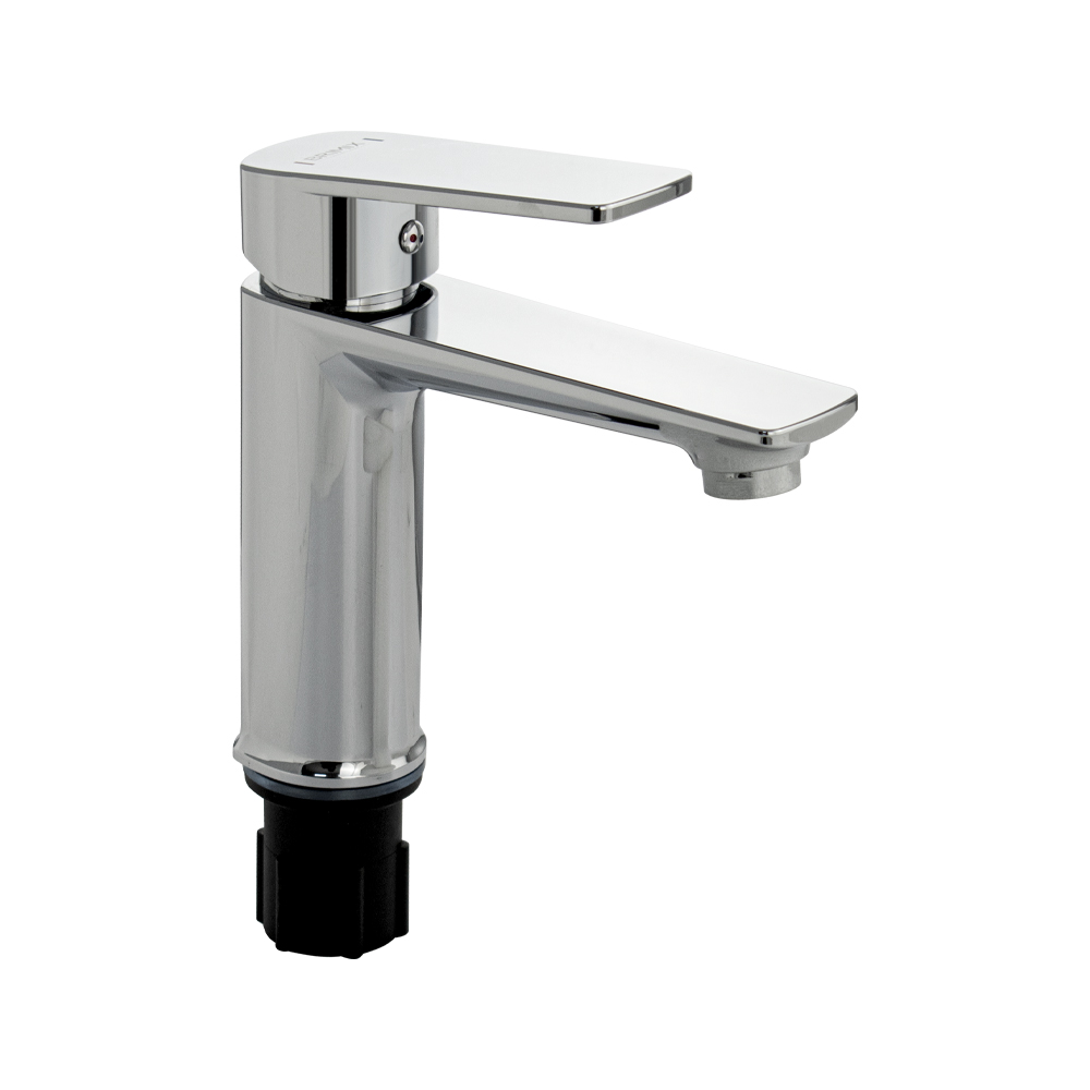 Смеситель для раковины, из высокопрочного пластика АБС, ХРОМ с коротким изливом, литой корпус, литая ручка, шаровый. Крепление резьба - гайка, картридж d = 40 мм. хромированный аэратор для экономии воды. Габаритные размеры: высота 170 мм, длина 170 мм, диаметр посадочного седла 45 мм, длина резьбы 50 мм, длина подводки 450 мм. Вес - 0,574 кг, объём - 0,0045 м3. В комплекте паспорт, корпус, пластиковая подводка с латунными штуцерами 1/2, крепеж, набор прокладок.