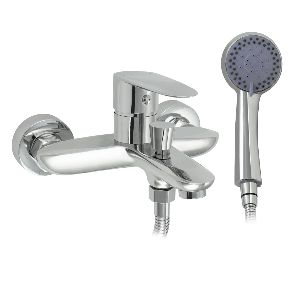 Смеситель в ванную / душевую комнату, латунный корпус, хромированный, с коротким изливом, литой корпус, шаровый, с кнопочным дивертором на корпусе. Картридж d = 35 мм, литая ручка, аэратор для экономии воды, чашки и эксцентрики. Габаритные размеры: ширина 150 мм, высота корпуса 110 мм, длина излива 120 мм, круглая трёхрежимная душевая лейка d = 75 мм, шланг 150 см. Вес - 2,200 кг, объём - 0,00616 м3. В комплекте паспорт, корпус с изливом, дивертор, душевая лейка, шланг, кронштейн, комплект крепежа и прокладок.