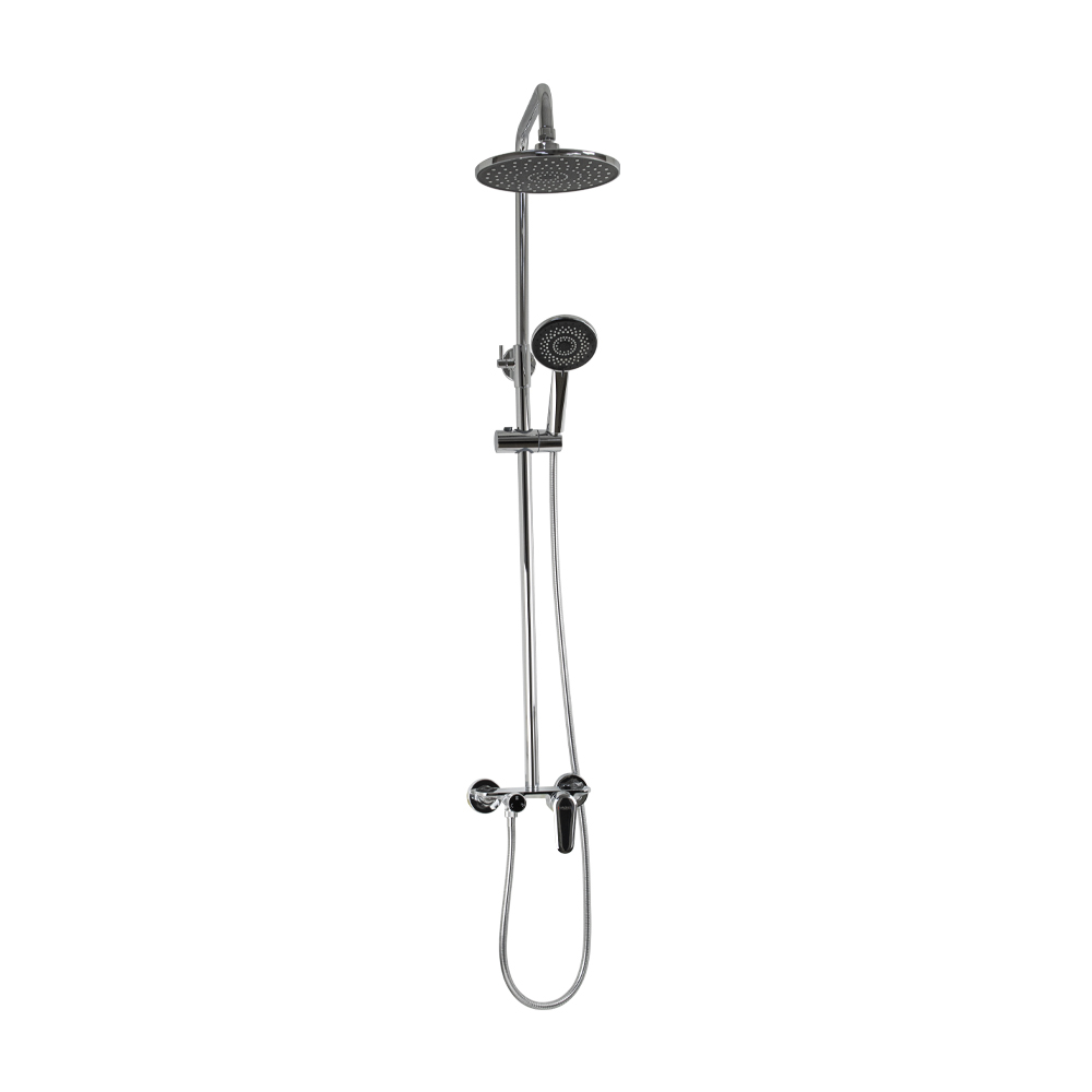 Смеситель + стойка душевая "тропический душ" с двумя лейками в ванную, хромированные. В дизайне душевой стойки гармонично соединились строгие линии и мягкие переходы. Она отлично впишется в интерьер ванной комнаты в минималистическом стиле. Глянцевое хромированное покрытие не стирается и сохраняет первозданный внешний вид в течение всего периода эксплуатации. Длительную работу без протечек обеспечивает смеситель с керамическим картриджем. Угол наклона верхнего душа можно регулировать в соответствии с потребностями каждого пользователя. Ручная лейка оснащена металлическим шлангом, который не перекручивается во время водных процедур. Смеситель с душевым шлангом и лейкой и дивертор переключения в трёх положениях. Картридж d = мм, ручка с кольцом, аэратор для экономии воды, чашки и эксцентрики. Душевая стойка с присоединением к корпусу смесителя и дополнительным креплением к стене и большой круглой лейкой с эффектом тропического душа. Габаритные размеры: ширина смесителя 150 мм, высота 100 мм, длина корпуса 83 м
