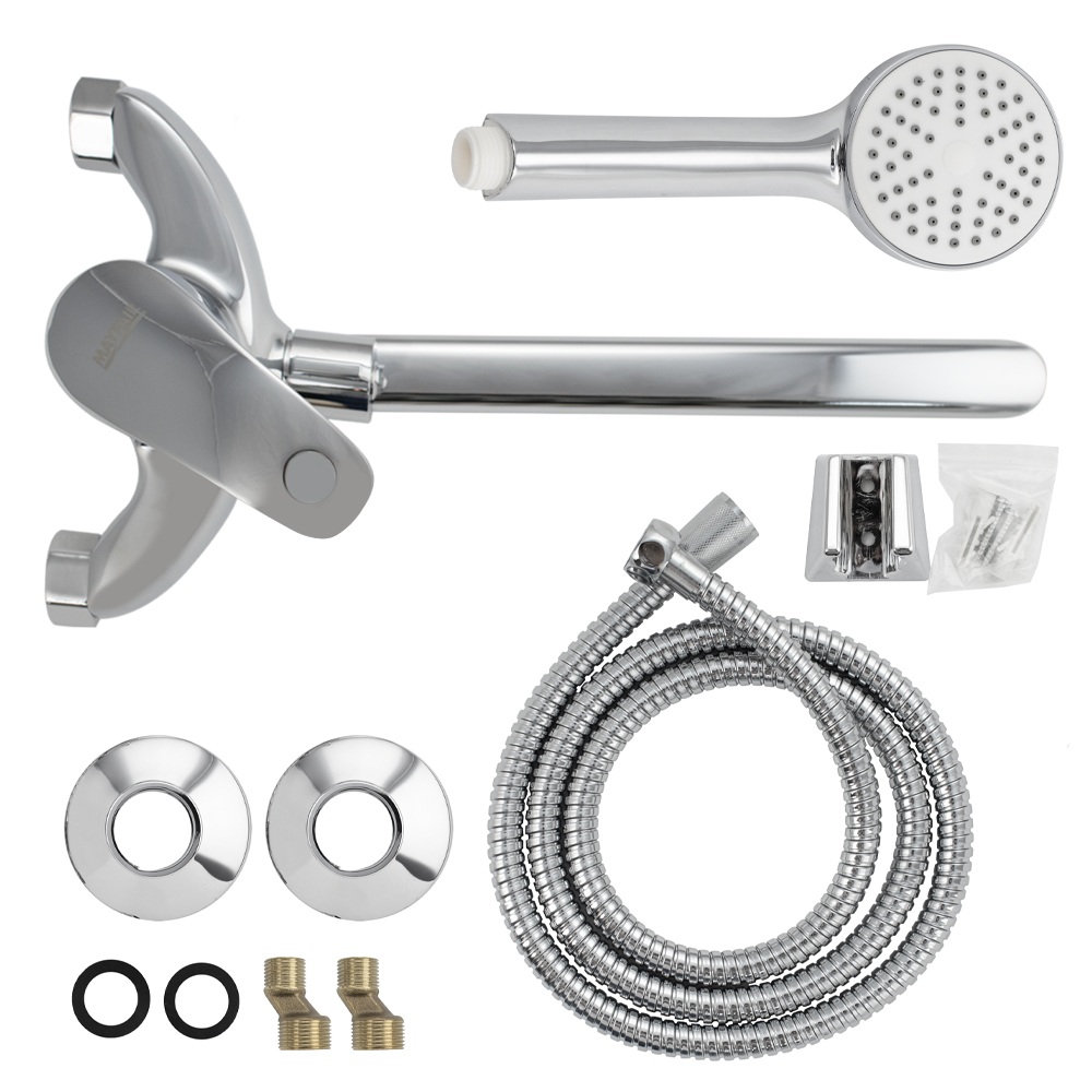 Смеситель хромированный в ванную / душевую комнату с длинным, плоским изливом, изогнутый дутый корпус, шаровый, с дивертором м/к на корпусе. Материал изготовления — ЦАМ (цинк-алюминий-медь) + нержавеющая сталь. Картридж d = 40 мм, ручка литая, аэратор для экономии воды, чашки и эксцентрики. Габаритные размеры: ширина 150 мм, высота корпуса 155 мм, длина излива 280 мм, трёхрежимная душевая лейка d = 78 мм, шланг 150 см. Вес - 1,500 кг, объём - 0,00435 м3. В комплекте паспорт, корпус с изливом, дивертор, душевая лейка, шланг, кронштейн, комплект крепежа и прокладок.