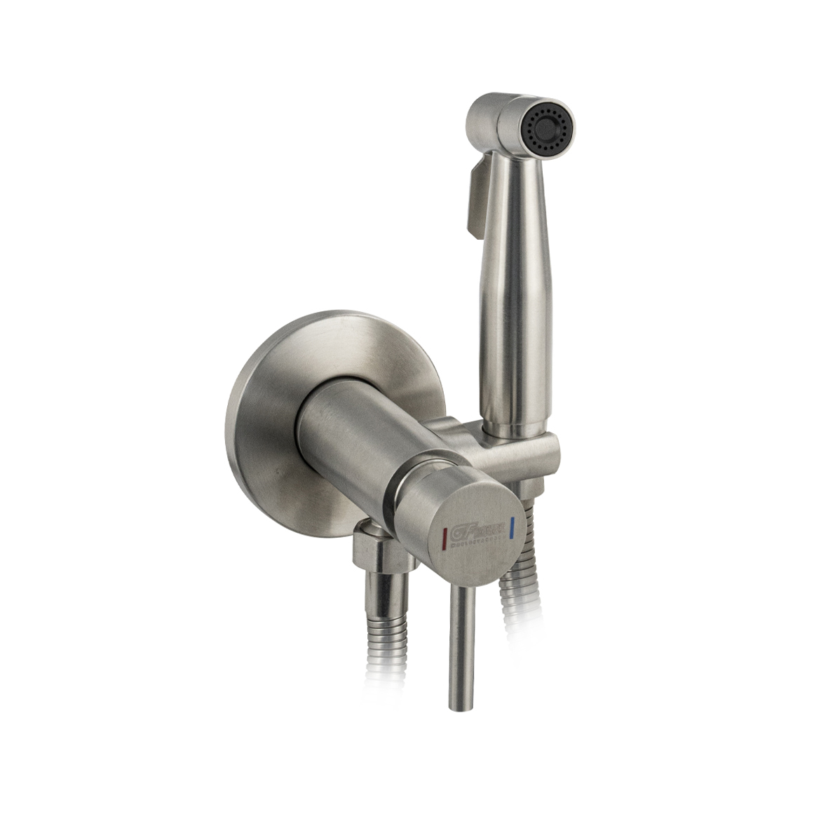 Стильный смеситель с гигиенической лейкой выполнен из прочного, влагостойкого материала - нержавеющей стали и разработан для ванной и туалетной комнат, оформленных в современном стиле. Все металлические детали покрыты износостойким матовым покрытием, которое не тускнеет со временем и устойчиво к появлению царапин, благодаря чему устройство исправно прослужит долгие годы. Лейка душа сохраняет поверхность чистой – любые загрязнения с форсунок удаляются сухой салфеткой. Включает в себя смеситель и ручной душ с аксессуарами (держателем, шлангом). Гигиенический душ управляется при помощи нажимной кнопки. Стильный смеситель управляется изящным рычагом, позволяющим с легкостью регулировать напор и температуру воды. Габаритные размеры: высота лейки мм, высота посадочного седла мм, ширина посадочного седла мм, глубина мм. Вес - кг, объём - м3. В комплект входит лейка/ смеситель/ душевой шланг/ крепёж.