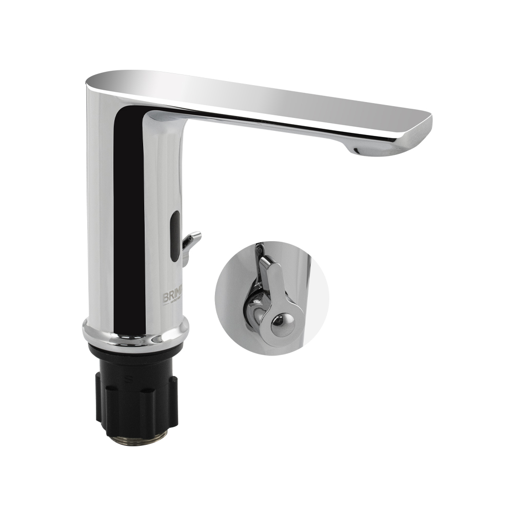 Сенсорный смеситель на раковину с регулировкой температуры воды на корпусе, предназначен для монтажа в жилых домах и общественных помещениях. Изделие выполнено в стиле хай-тек из высококачественного материала с хромовым покрытием, обеспечивающим устойчивость к механическим воздействиям. Кран смешивания горячей и холодной воды с возможностью регулировки размещается на корпусе. Кран включится, если поднести руки к изливу. Бесконтактный принцип работы гарантирует гигиеничность устройства. Устройство снабжено аэратором, позволяющей очистку без использования дополнительных средств. Он насыщает воду воздухом для создания струи, комфортной для гигиенических процедур, и сокращения расхода ценного ресурса. Сенсорный смеситель включает поток воды за счет фотоэлемента. Универсальное питание DC 6V (4 батареи типа "АА", в комплектацию не входят), AC/DC 6V AC 220V (50/60Hz). Габаритные размеры - диаметр посадочного седла 55 мм, высота 135 мм, длина излива 175 мм. Вес - 1,900 кг, объём - 0,0060 м3. В комплекте паспорт, кор