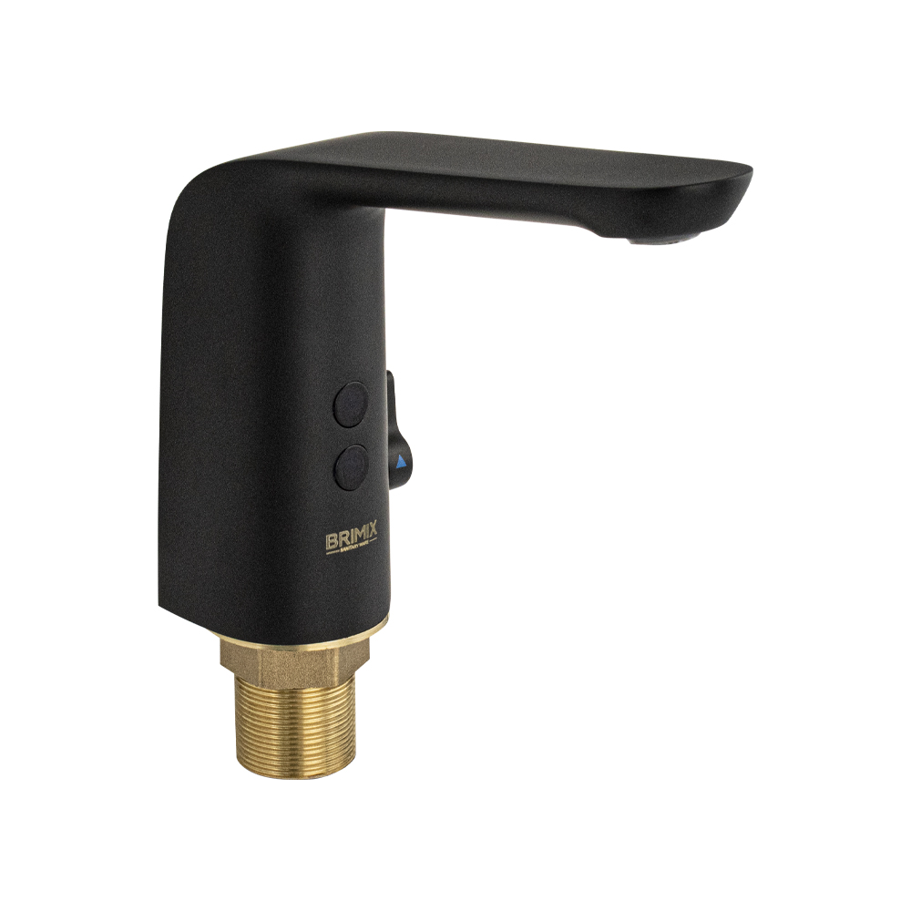 Смеситель сенсорный для раковины, цвет чёрный, с регулировкой температуры воды на корпусе. Изготовлен из высококачественной латуни. Предназначен для монтажа в жилых домах и общественных помещениях.. Кран смешивания горячей и холодной воды с возможностью регулировки размещается на корпусе. Бесконтактный принцип работы гарантирует гигиеничность устройства. Устройство снабжено аэратором, позволяющей очистку без использования дополнительных средств. Он насыщает воду воздухом для создания струи, комфортной для гигиенических процедур, и сокращения расхода ценного ресурса. Сенсорный смеситель включает поток воды за счет фотоэлемента. Универсальное питание DC 6V (4 батареи типа "АА", в комплектацию не входят), AC/DC 6V AC 220V (50/60Hz). Габаритные размеры: диаметр посадочного седла 50 мм, высота 130 мм, длина излива 190 мм. Вес - 1,900 кг, объём - 0,00700 м3. В комплекте: паспорт изделия, корпус, нижняя часть с программным управлением, монтажный комплект.