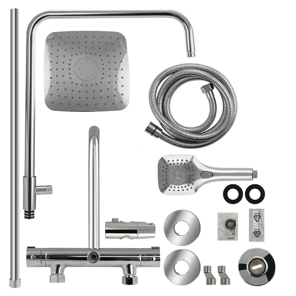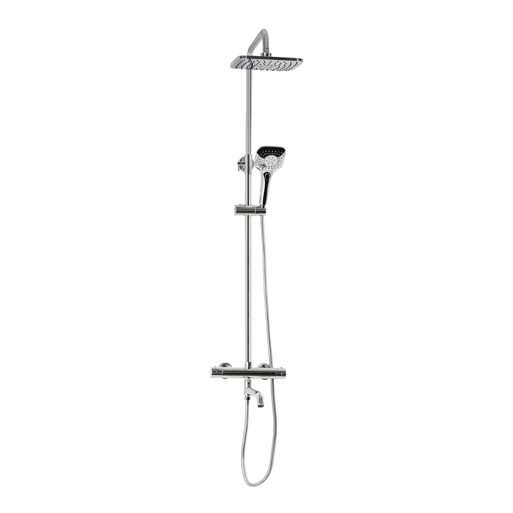 Смеситель с длинным изливом термостатический + стойка душевая телескопическая "тропический душ" – надежное сантехническое оборудование. Латунный, хромированный корпус с круглым коротким изливом, поворот которого является переключением подачи воды. Температура и напор воды устанавливаются поворотом двух удобных рукояток. Термостат поддерживает заданную температуру воды и может работать в системах низкого давления с газовыми проточными водонагревателями. Ограничитель температуры до 38 градусов спасает от возможного ожога при случайном повороте рукоятки. Встроенный аэратор формирует комфортный и приятный поток воды. Сеточка легко снимается для удаления налета. Аксессуар оснащен термостатическим картриджем с шумоподавлением и керамической кран-буксой, стойка с двумя квадратными хромированными лейками и шланг хромированный. Габаритные размеры: высота стойки 800-1200 мм, длина излива стойки 330 мм, лейка для душа 105*240 мм двухрежимная, лейка тропического душа 220*220 мм, длина гусака 300 мм, шланг 150 см. Вес -