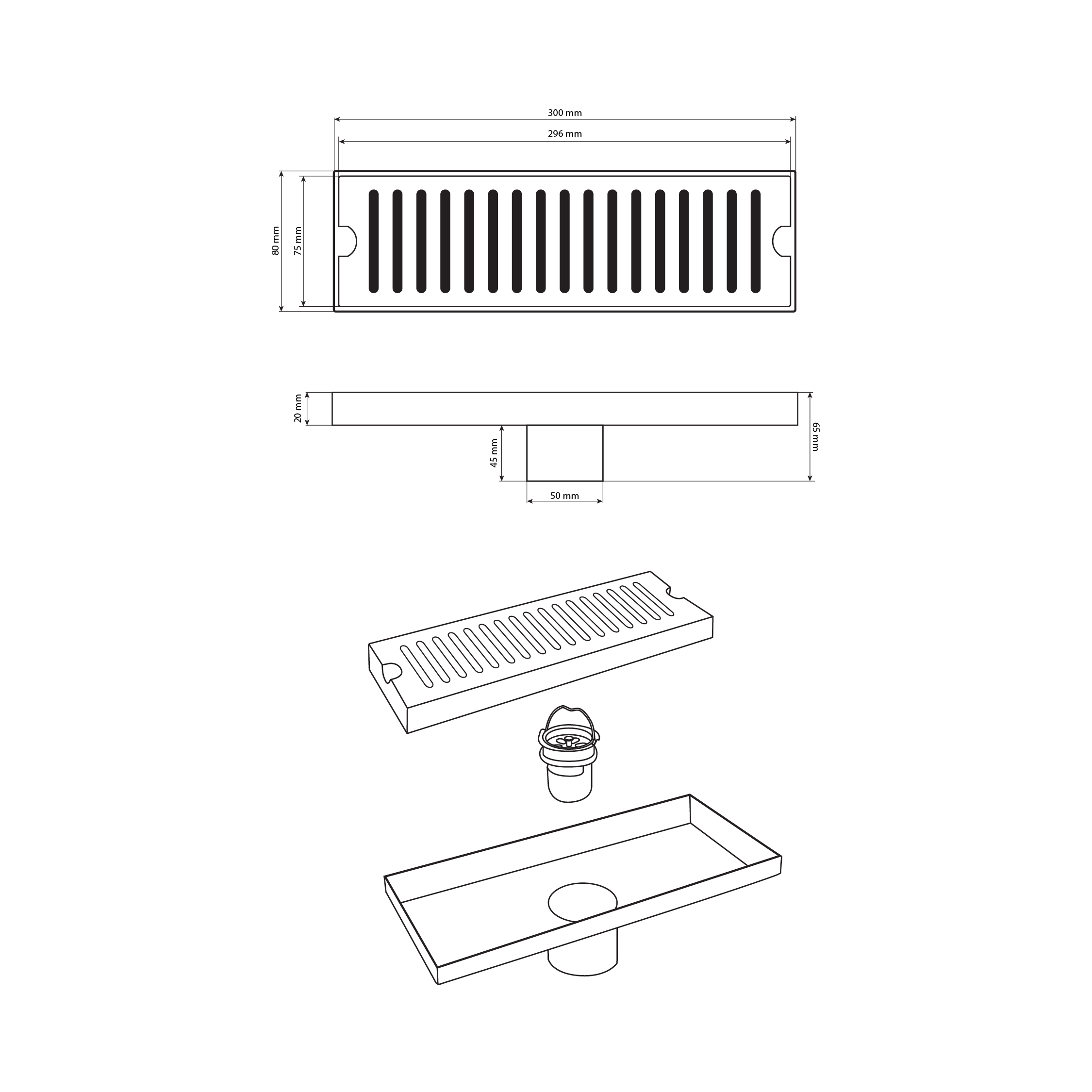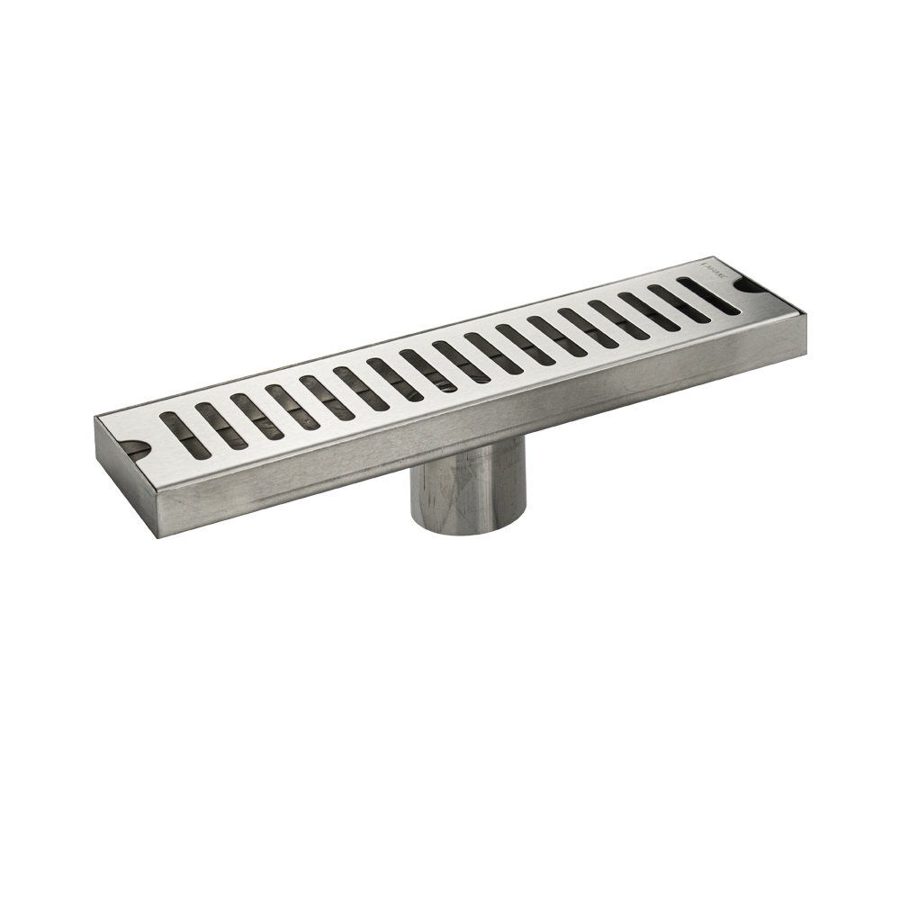Душевой сливной трап из нержавеющей стали, матовый, линейный, вертикальный с гидрозатвором – это специальный элемент сантехнических коммуникаций, предназначенный для отвода воды в систему канализации. Как правило, душевые трапы устанавливаются непосредственно в пол. Благодаря небольшим габаритам и высоте душевые трапы идеальны для установки в душевых зонах. Это важно для организации пространства, где нет возможности установить классическую ванну: в малогабаритных квартирах, студиях, совмещенных санузлах и т.п. Габаритные размеры: высота 65 мм, ширина 80 мм, длина 300 мм, выход в канализацию 50 мм. Вес - 0,776 кг, объём - 0,00216 м3.