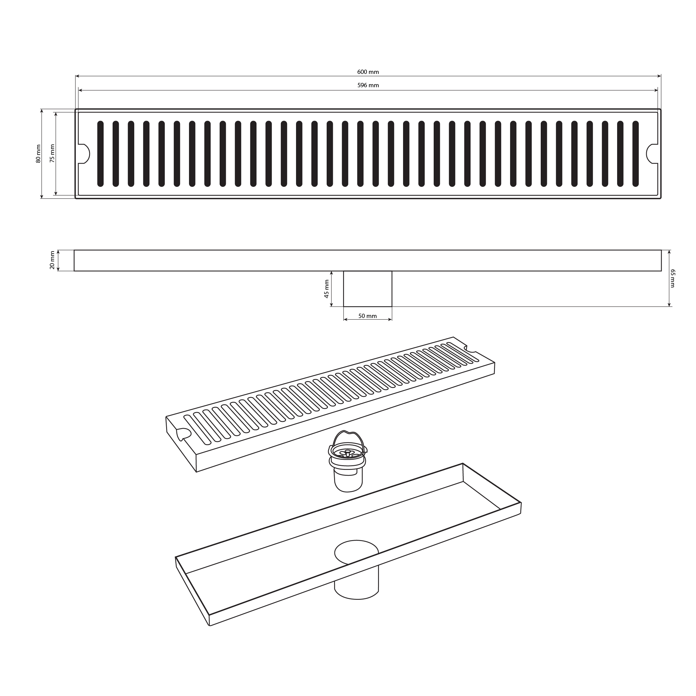 Душевой сливной трап из нержавеющей стали, матовый, линейный, вертикальный с гидрозатвором – это специальный элемент сантехнических коммуникаций, предназначенный для отвода воды в систему канализации. Как правило, душевые трапы устанавливаются непосредственно в пол. Благодаря небольшим габаритам и высоте душевые трапы идеальны для установки в душевых зонах. Это важно для организации пространства, где нет возможности установить классическую ванну: в малогабаритных квартирах, студиях, совмещенных санузлах и т.п. Габаритные размеры: высота 65 мм, ширина 80 мм, длина 600 мм, выход в канализацию 50 мм. Вес - 1,428 кг, объём - 0,0042 м3.