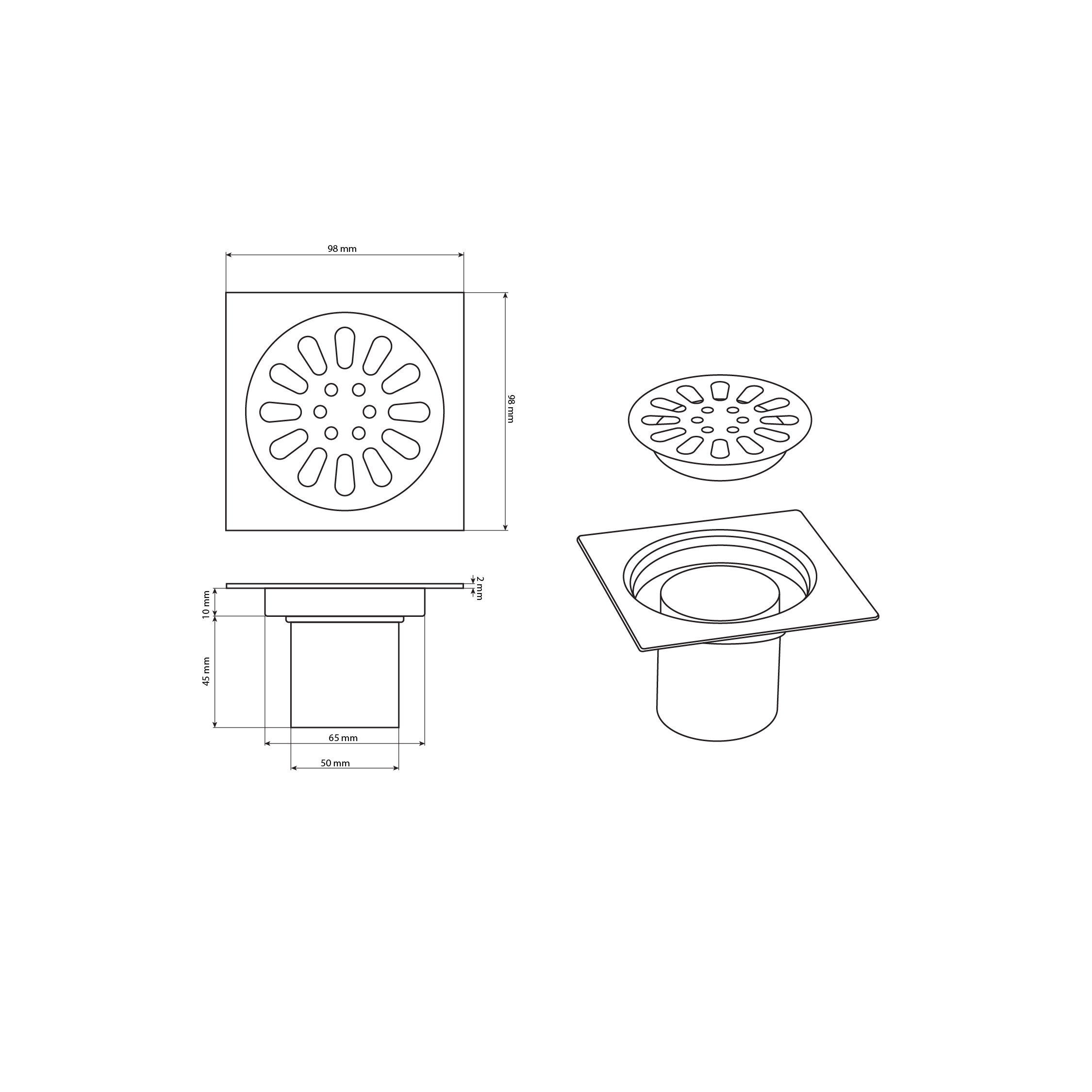 Душевой сливной трап из нержавеющей стали, вертикальный с гидрозатвором – это специальный элемент сантехнических коммуникаций, предназначенный для отвода воды в систему канализации. Как правило, душевые трапы устанавливаются непосредственно в пол. Благодаря небольшим габаритам и высоте душевые трапы идеальны для установки в душевых зонах. Это важно для организации пространства, где нет возможности установить классическую ванну: в малогабаритных квартирах, студиях, совмещенных санузлах и т.п. Габаритные размеры: высота 64 мм, ширина 98 мм, длина 98 мм, выход в канализацию 50 мм. Вес - 0,25 кг, объём - 0,00112 м3.