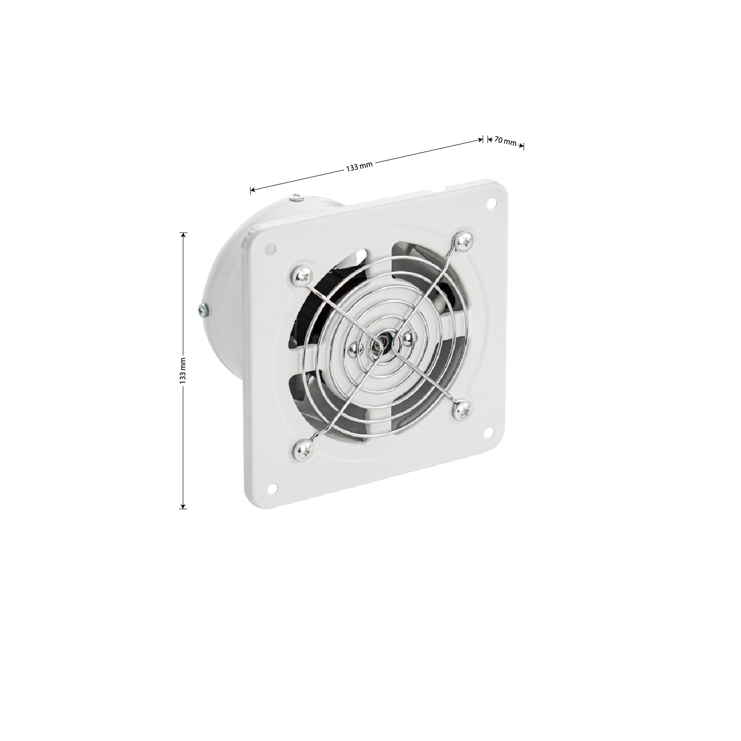 Вытяжной вентилятор осевой, для санузлов и различных бытовых помещений, белый, металлический, D - 100 мм, с обратным клапаном. Производительность 140 м3 / час, 45 Дб, 2800 об/мин, 20 Вт IPX2, 50/60 Hz. Габаритные размеры: ширина 133 мм, высота 133 мм, глубина 70 мм. Вес - 0.68 кг, объем - 0.00176 м3.