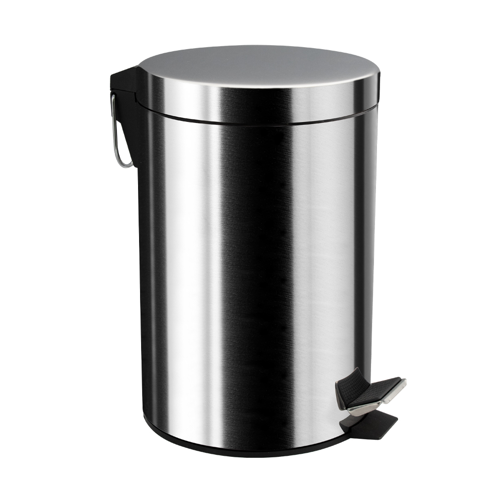 Круглое хромированное ведро для хранения мусора с педалью и откидной крышкой, прекрасно подойдет для ванной комнаты, туалета или кухни и офиса. Нержавеющая сталь SUS 410. Ведро оснащено пластиковым гигиеническим контейнером с металлической ручкой для переноса и механизмом поднятия крышки, при помощи нажатия на педаль. Объём ведра 7 литров. Отличное решение для утилизации мелкого бытового мусора. Наличие крышки обеспечивает защиту от неприятных запахов и распространения бактерий, а педальная система открывания позволяет не прикасаться к баку руками. Благодаря современному дизайну ведро впишется в интерьер любой кухни и ванной комнаты. Преимущества ведра для мусора с педалью: удобно устанавливается и перемещается на любое место; изготовлено из устойчивой к коррозии нержавеющей стали с хромированным покрытием; пользоваться изделием удобно и гигиенично благодаря педали в нижней части корпуса. Нескользящая пластиковая основа ведра предотвращает повреждение пола. Габаритные размеры: высота 310 мм, диаметр 205 мм.