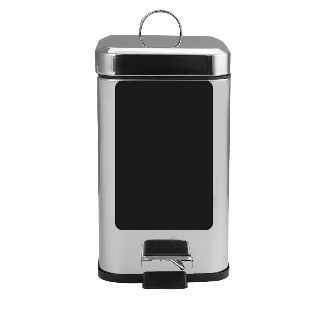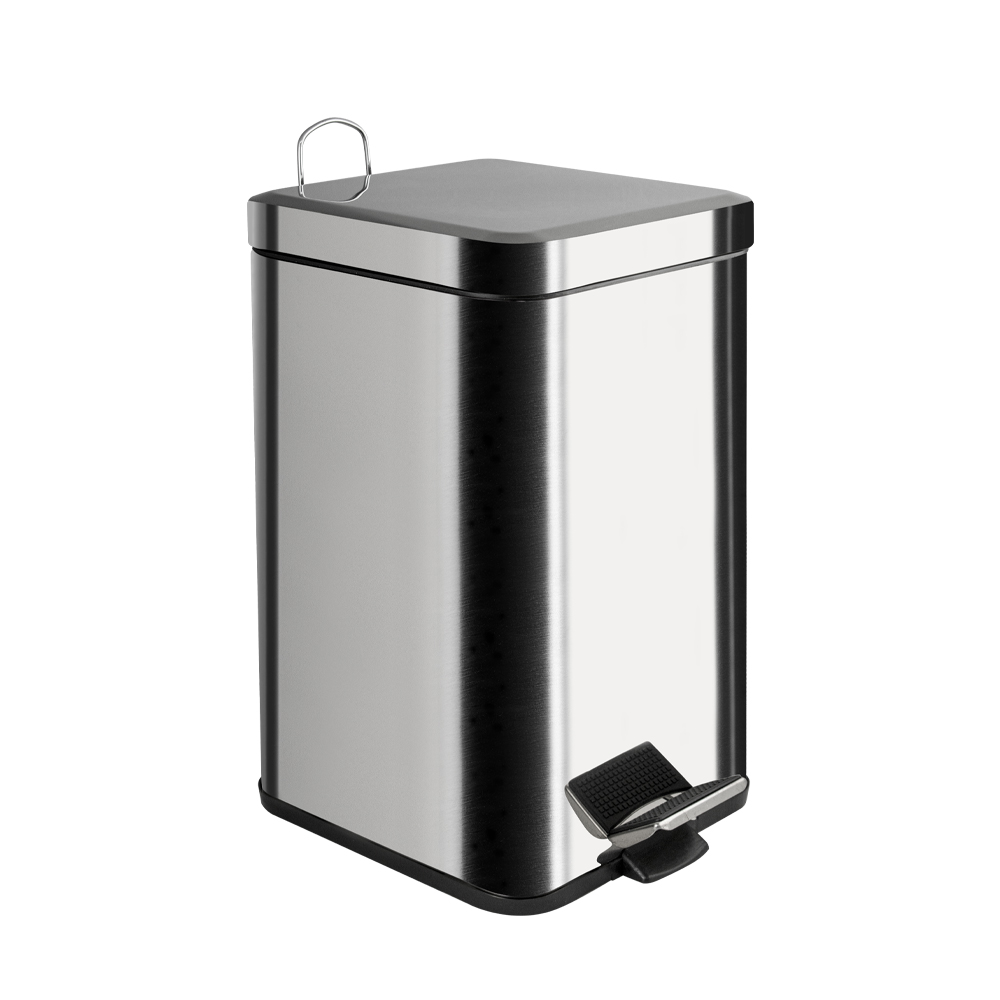Квадратное хромированное ведро для хранения мусора, с педалью и откидной крышкой, прекрасно подойдет для ванной комнаты, туалета или кухни и офиса, нержавеющая сталь SUS 410. Ведро оснащено пластиковым гигиеническим контейнером с металлической ручкой для переноса и механизмом поднятия крышки, при помощи нажатия на педаль. Объём ведра 12 литров. Отличное решение для утилизации мелкого бытового мусора. Наличие крышки обеспечивает защиту от неприятных запахов и распространения бактерий, а педальная система открывания позволяет не прикасаться к баку руками. Благодаря современному дизайну ведро впишется в интерьер любой кухни и ванной комнаты. Преимущества ведра для мусора с педалью: удобно устанавливается и перемещается на любое место; изготовлено из устойчивой к коррозии нержавеющей стали с хромированным покрытием; пользоваться изделием удобно и гигиенично благодаря педали в нижней части корпуса. Нескользящая пластиковая основа ведра предотвращает повреждение пола. Габаритные размеры: высота 380 мм, ширина 225 м
