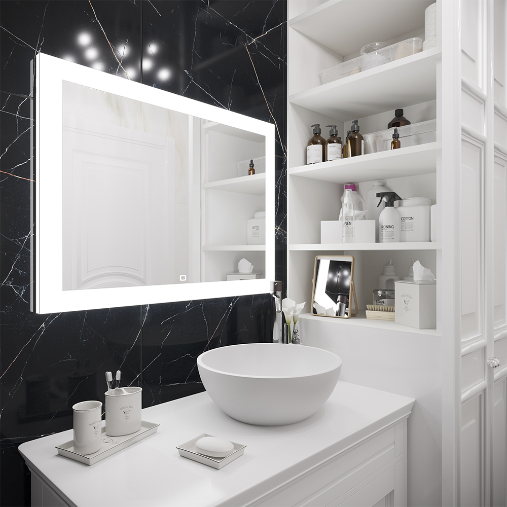 Зеркало с внутренней LED подсветкой, прямоугольное, сенсорное, с пескоструйной обработкой, изготовлено из влагостойкого зеркального полотна толщиной 4 мм производства AGC GLASS EUROPE. Корпус изготовлен из высокопрочного пластика АБС. Источник света скрыт за зеркальной поверхностью, световое зеркало представляет собой идеальное сочетание стеклянной поверхности и глубокой игры света. Край полотна обработан для защиты от порезов при контакте. Питание от сети 220В, сенсорный выключатель, температура свечения LED - 6000К, светодиоды - 2835 (120), 220 V / 50 Hz. Управление подсветкой осуществляется сенсорным выключателем. Срок службы диодов - 30000 часов. LED подсветка зеркала имеет нейтральный оттенок белого свечения. Изделие прошло обязательную сертификацию и может использоваться в помещениях с повышенной влажностью воздуха. В комплект поставки входит крепеж. Габаритные размеры: высота 600 мм, ширина 800 мм. Вес - 6,800 кг, объём - 0,02200 м3.