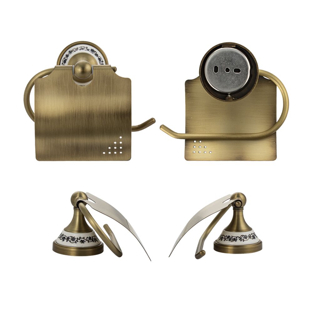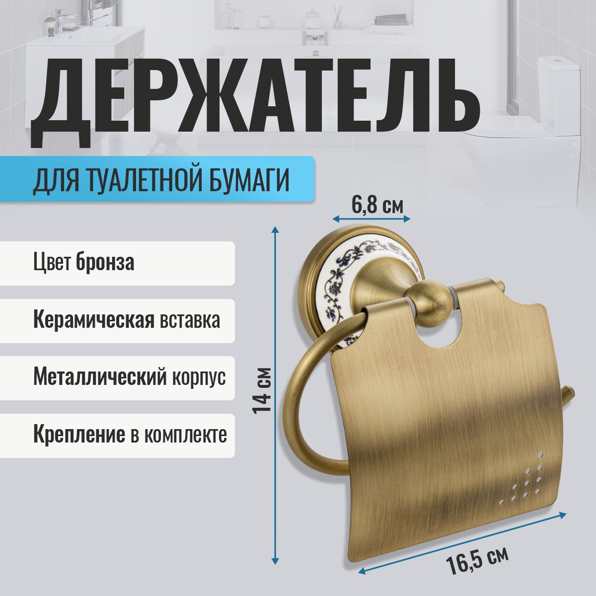 Держатель туалетной бумаги с экраном, металлический, с керамической вставкой, с орнаментом, стильный и функциональный элемент санузла. Благодаря наличию крышки рулон будет защищен от попадания воды. Держатель для туалетной бумаги легко и удобно крепится к стене при помощи фурнитуры входящей в комплект поставки. Материал изготовления — ЦАМ. Имеет специальное бронзовое, матовое покрытие, которое защищает изделие от влаги и придает ему безупречный стильный вид и долговечность. Удобно чистить и легко менять рулоны. Габаритные размеры: ширина 165 мм, высота 140 мм, глубина 80 мм, основание 68 мм. Вес - 0,52 кг, объём - 0,0025 м3.