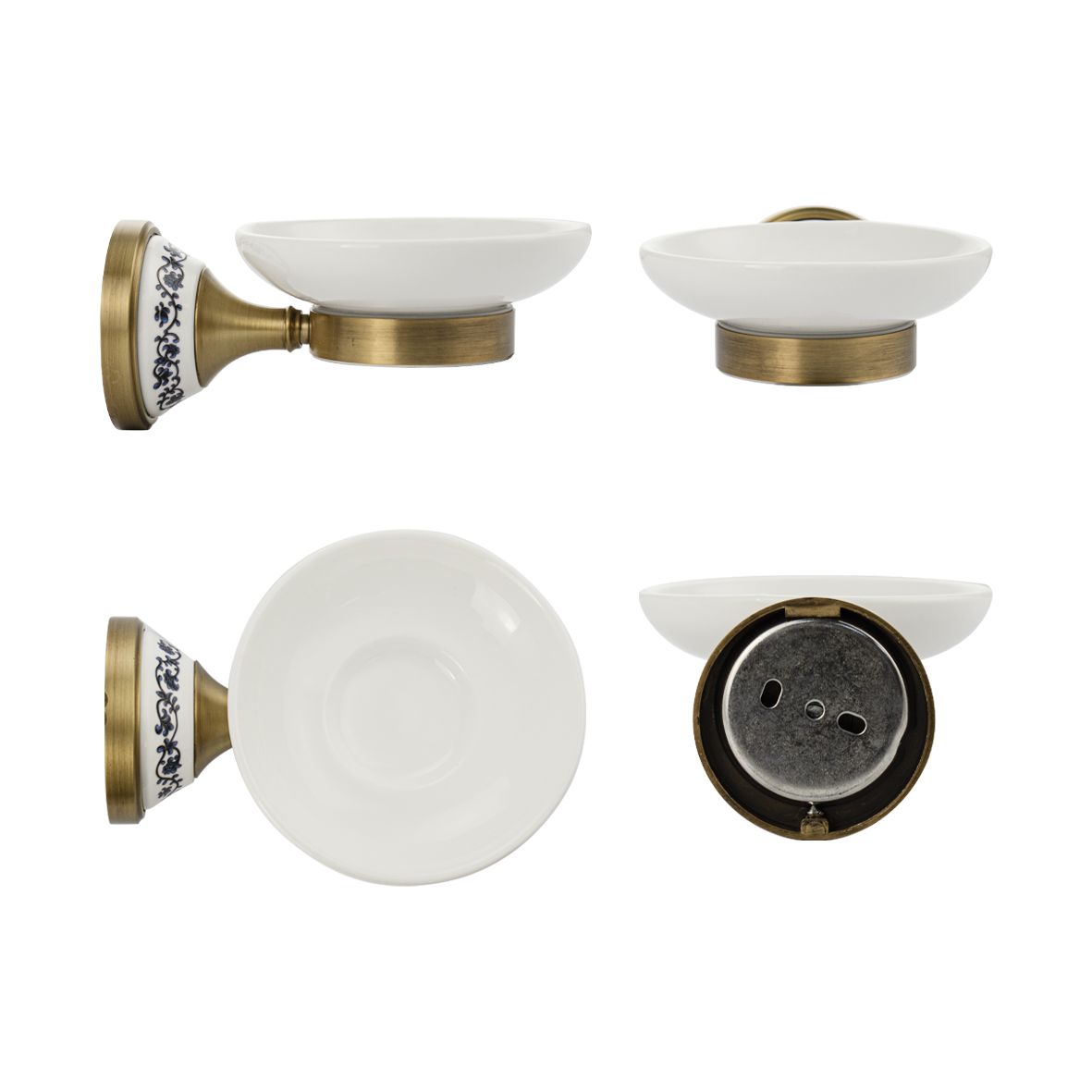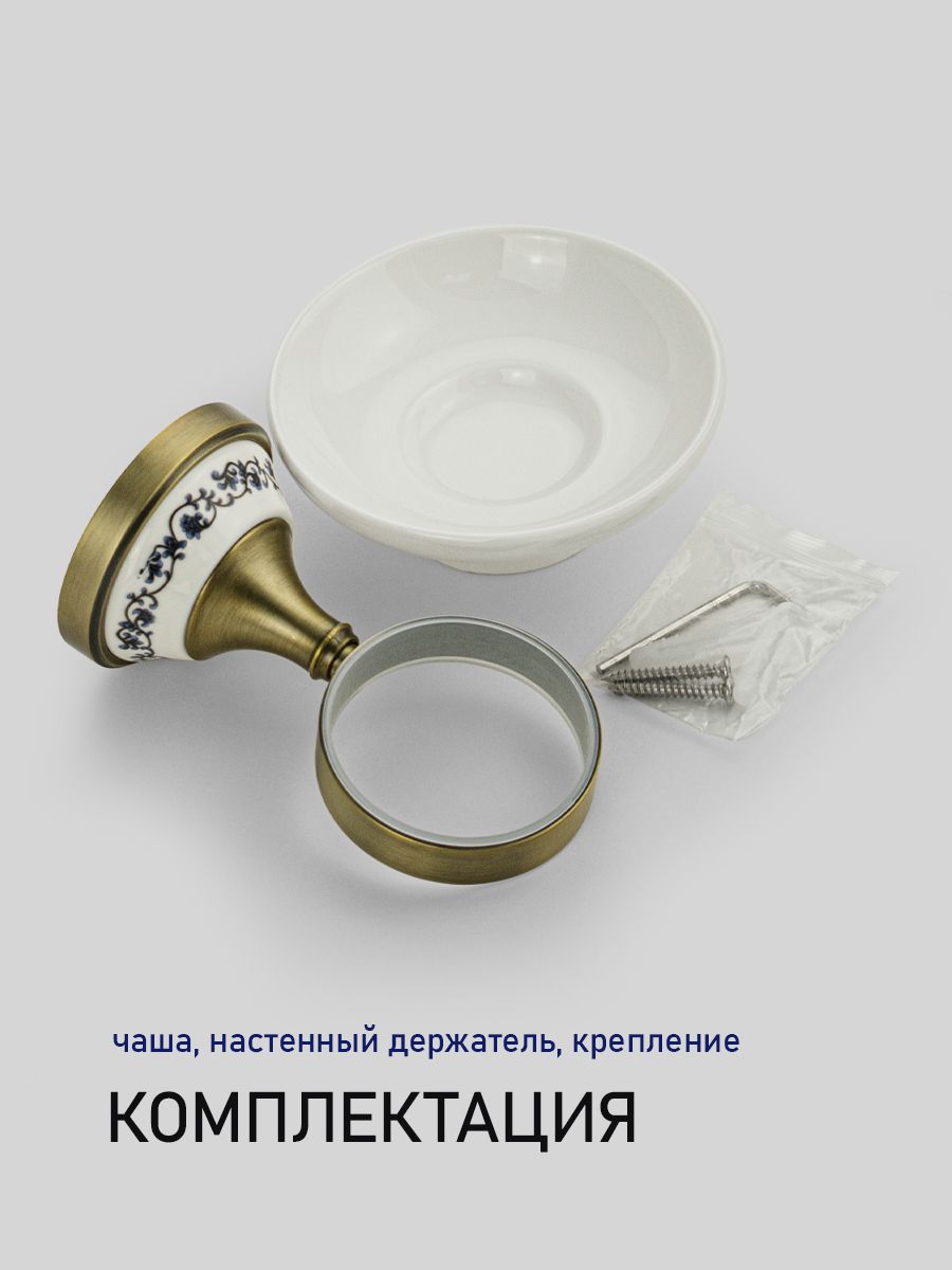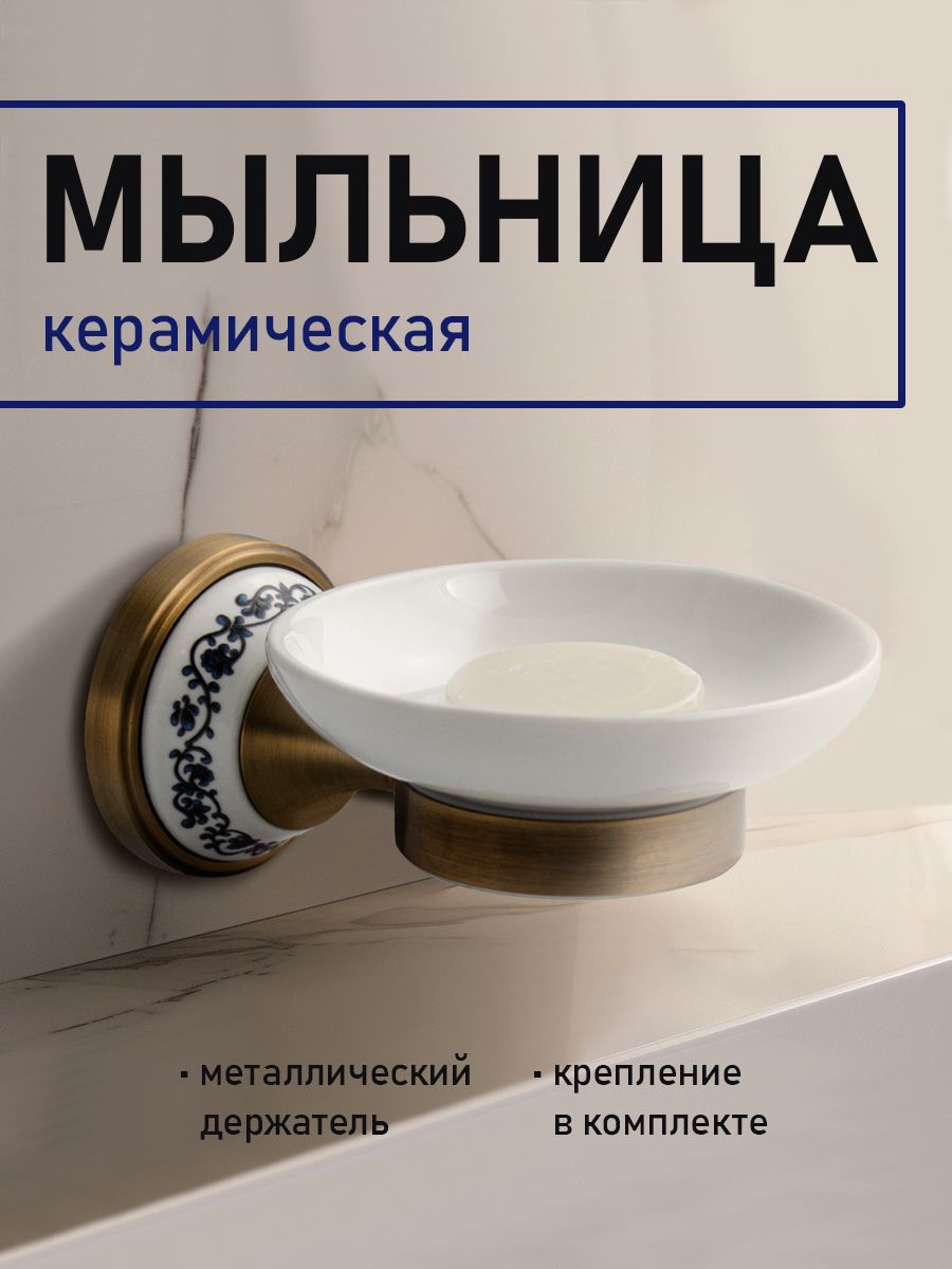 Мыльница подвесная, керамическая с креплением к стене, круглой формы на металлическом основании с керамической вставкой с орнаментом. Изделие выполнено из белой керамики и металла. Материал изготовления — ЦАМ. Имеет специальное бронзовое, матовое покрытие, которое защищает изделие от влаги и придает ему безупречный стильный вид и долговечность. Идеально подойдет не только для ванной, но и для кухни. Изделие крепится к стене с помощью дюбелей и саморезов (входят в комплект). Габаритные размеры: глубина 150 мм, основание 68 мм, диаметр мыльницы 110 мм. Вес - 0,50 кг, объём - 0,00166 м3.