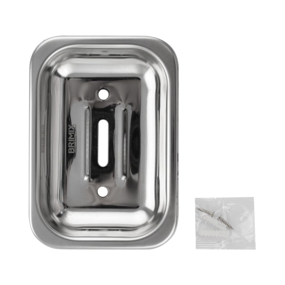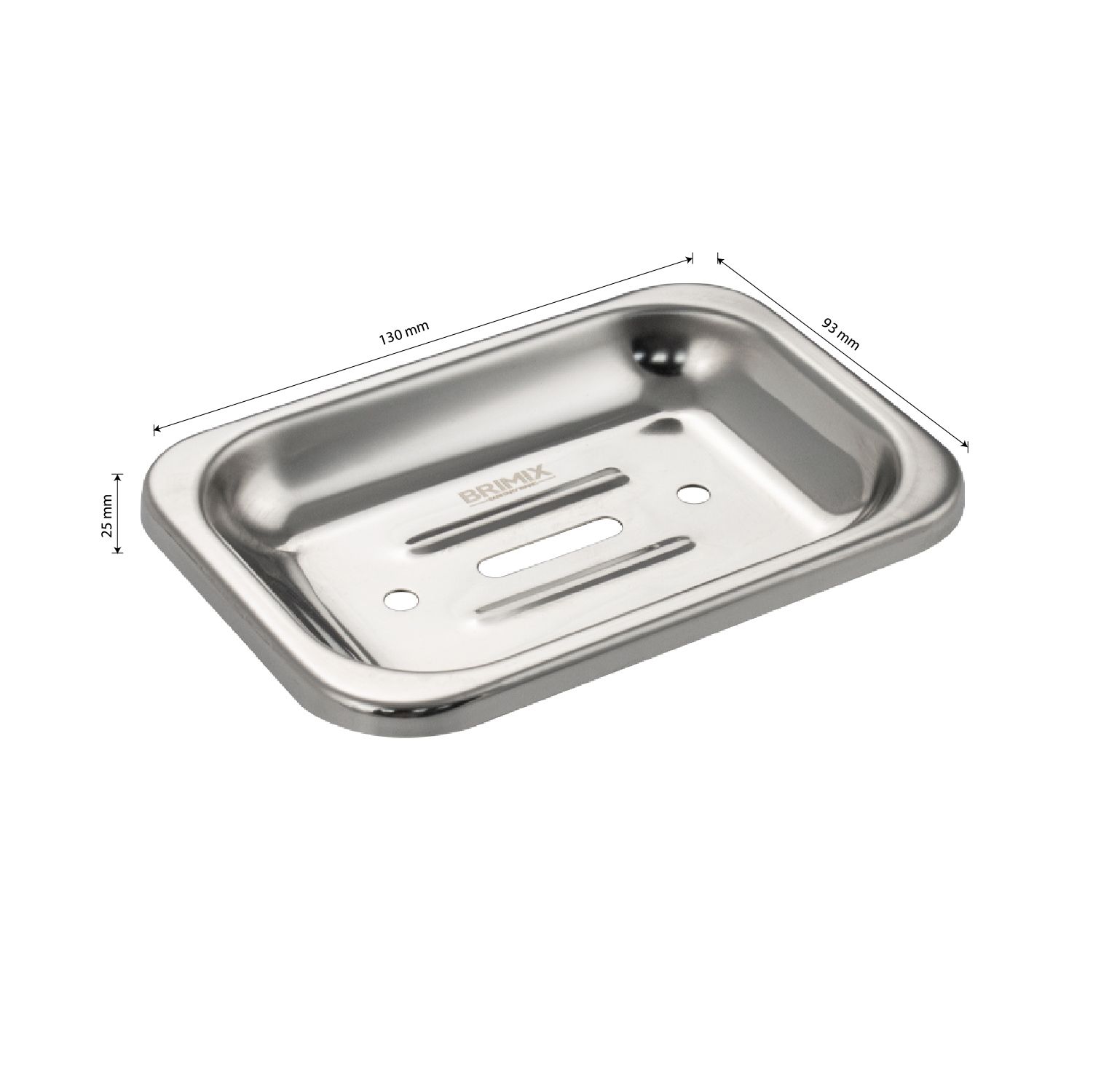 Мыльница подвесная, настенная, прямоугольной формы, литая, хромированная. Материал изготовления — нержавеющая сталь. Хромированное покрытие очень стойко переносит истирания и обеспечивает зеркальный блеск изделия. Литой каркас с прорезью не позволяет влаге скапливаться, поэтому мыло долгое время сохраняет свою форму. Идеально подойдет не только для ванной, но и для кухни. Изделие крепится к стене с помощью дюбелей и саморезов (входят в комплект). Габаритные размеры: ширина 130 мм, глубина 93 мм, высота 25 мм. Вес - 0,200 кг, объём - 0,00050 м3.