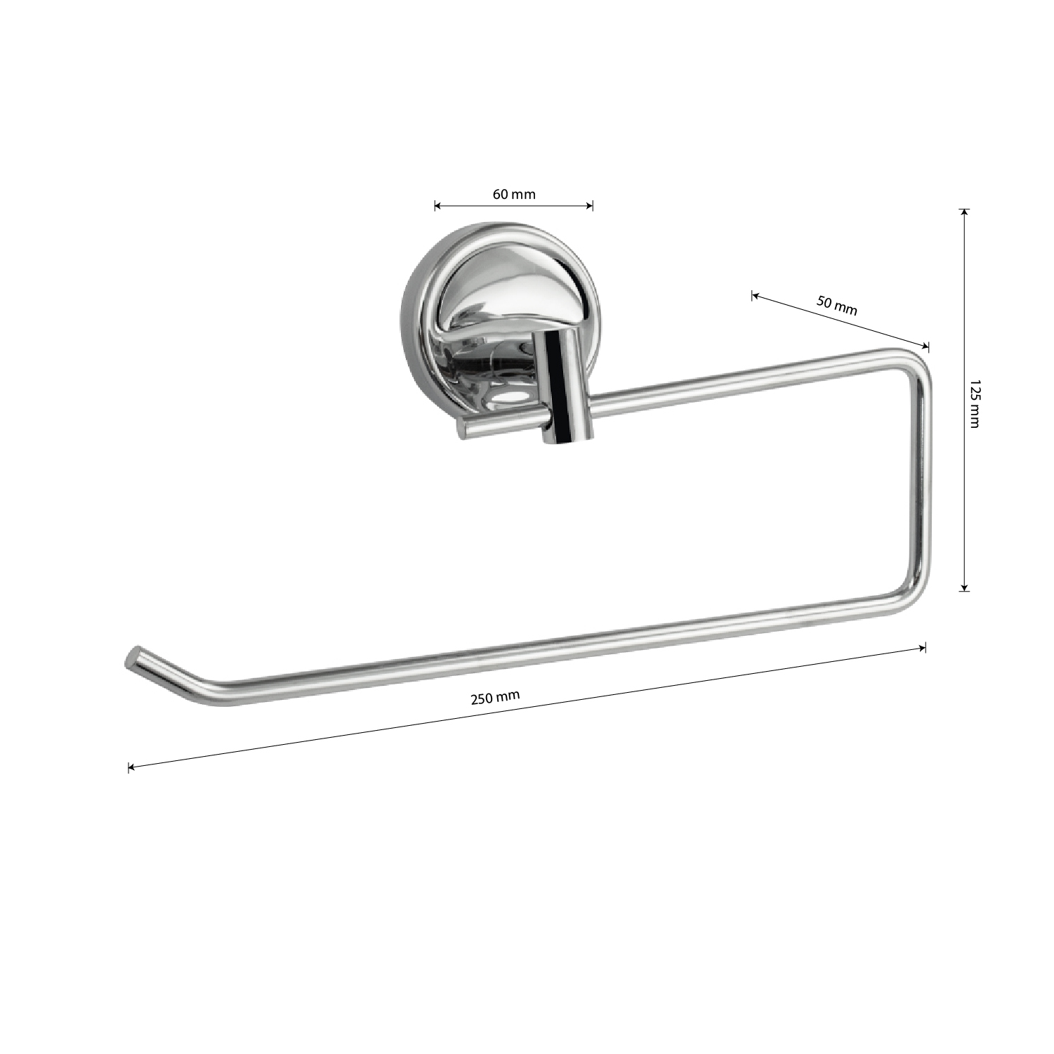 Держатель для бумажного полотенца без крышки металлический, хромированный, стильный и функциональный элемент. Держатель легко и удобно крепится к стене при помощи фурнитуры входящей в комплект поставки. Материал изготовления — ЦАМ (цинк-алюминий-медь). Имеет специальное хромированное покрытие, которое защищает изделие от влаги и придает ему блестящий внешний вид. Удобно чистить и легко менять рулоны. Габаритные размеры: ширина 250 мм, высота 125 мм, глубина 50 мм, основание 60 мм. Вес - 0,300 кг, объём - 0,00078 м3.