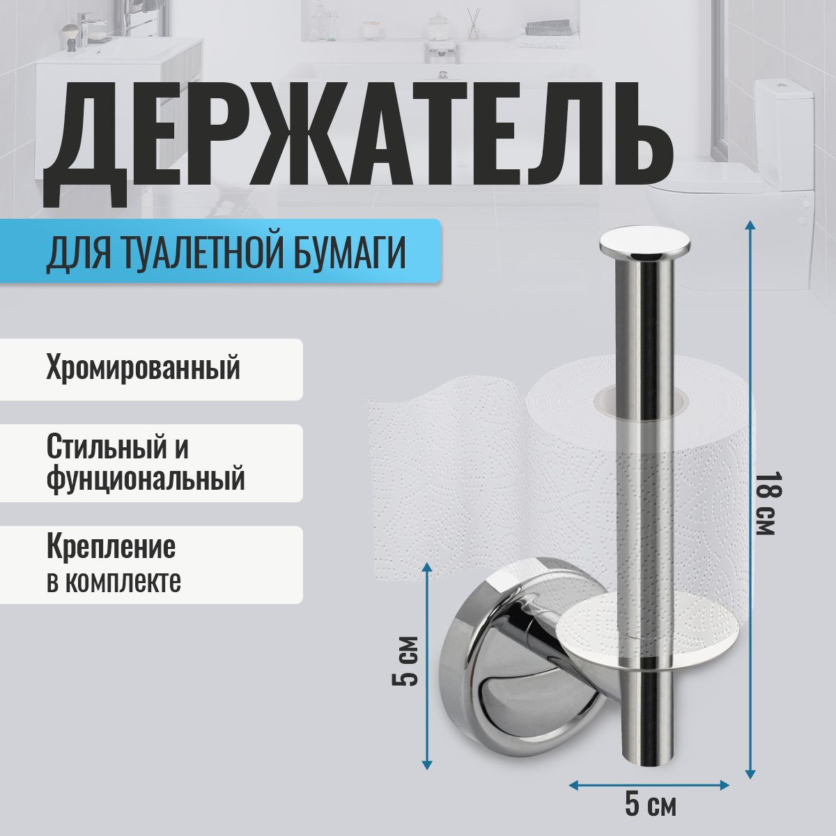 Держатель для туалетной бумаги, полотенца, ВЕРТИКАЛЬНЫЙ, без крышки, металлический, хромированный, стильный и функциональный элемент санузла. Держатель для туалетной бумаги легко и удобно крепится к стене при помощи фурнитуры входящей в комплект поставки. Материал изготовления — ЦАМ (цинк-алюминий-медь). Имеет специальное хромированное покрытие, которое защищает изделие от влаги и придает ему блестящий внешний вид. Удобно чистить и легко менять рулоны. Габаритные размеры: ширина 50 мм, высота 180 мм, глубина 90 мм, шток 110 мм. Вес - 0,250 кг, объём - 0,00064 м3.