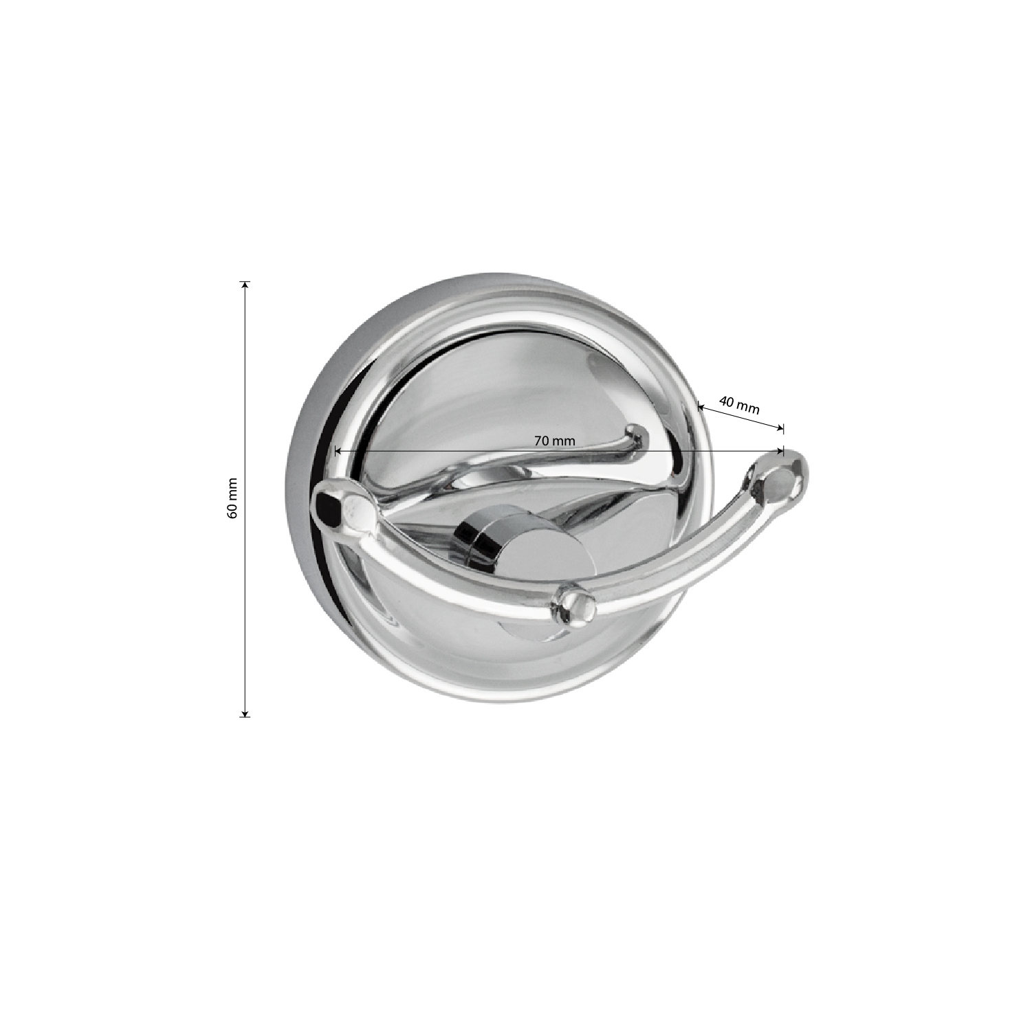 Крючок двойной для полотенец металлический, хромированный. Материал изготовления — ЦАМ (цинк-алюминий-медь). Хромированное покрытие очень стойко переносит истирания и обеспечивает зеркальный блеск изделия. На крючке с легкостью можно размещать вещи для сушки или вешать, как полотенца, так и одежду перед походом в душ. Идеально подойдет не только для ванной, но и для кухни, а также для дачи или гаража - при необходимости на держатель можно вешать любые предметы. Изделие крепится к стене с помощью дюбелей и саморезов (входят в комплект). Габаритные размеры: основание 60 мм, длина 70 мм, глубина 40 мм. Вес - 0,100 кг, объём - 0,00031 м3