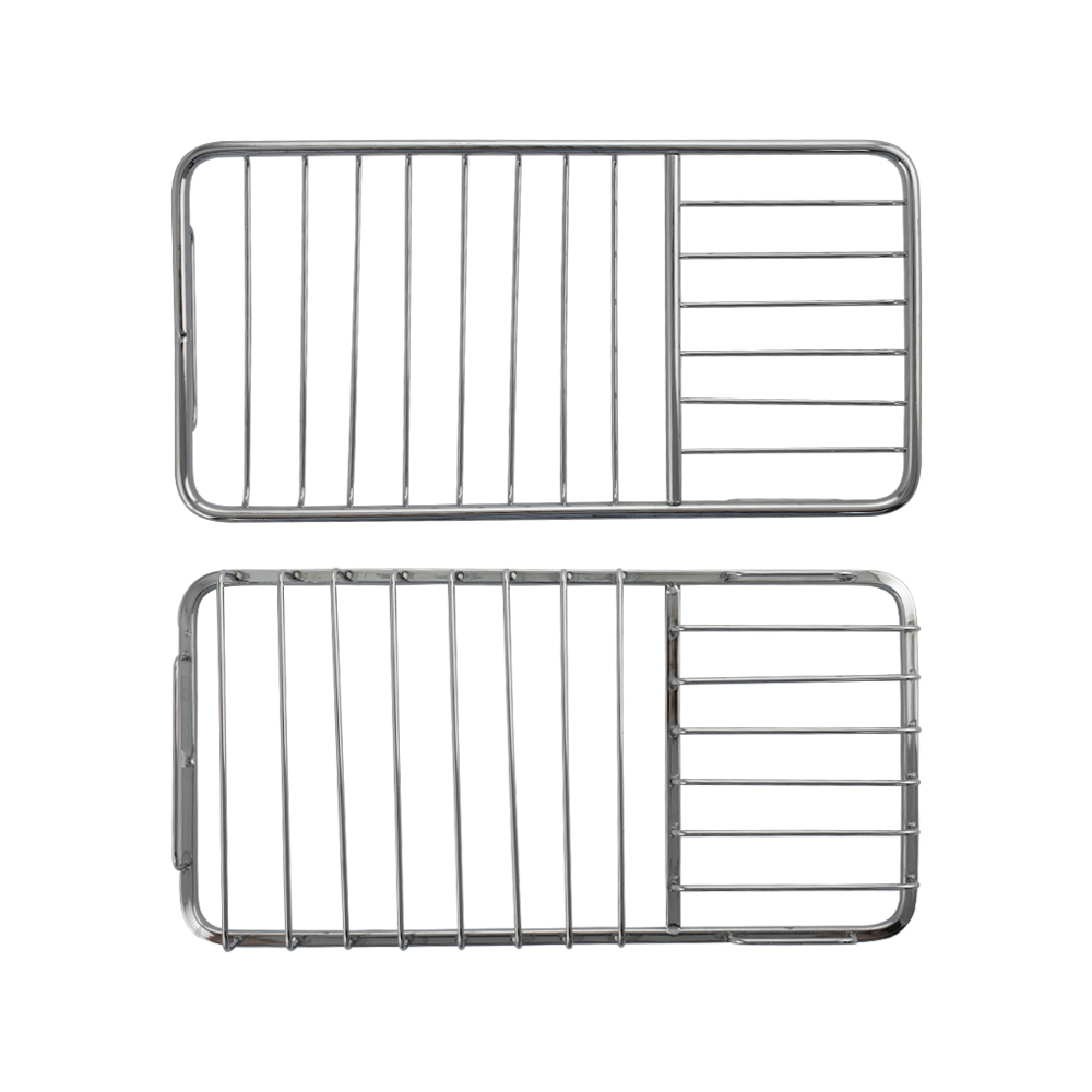 Мыльница подвесная, настенная, большая, двухсекционная, прямоугольной формы, решетка, хромированная. Материал изготовления — ЦАМ. Хромированное покрытие очень стойко переносит истирания и обеспечивает зеркальный блеск изделия. Сетчатый каркас не позволяет влаге скапливаться, поэтому мыло долгое время сохраняет свою форму. Идеально подойдет не только для ванной, но и для кухни. Изделие крепится к стене с помощью дюбелей и саморезов (входят в комплект). Габаритные размеры: ширина 240 мм, глубина 120 мм, высота 30 мм. Вес - 0,400 кг, объём - 0,00150 м3.