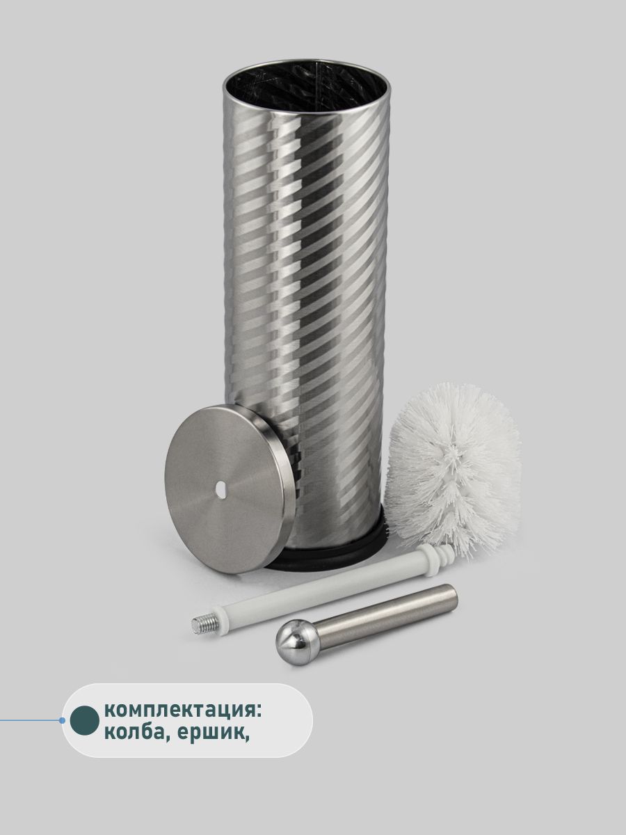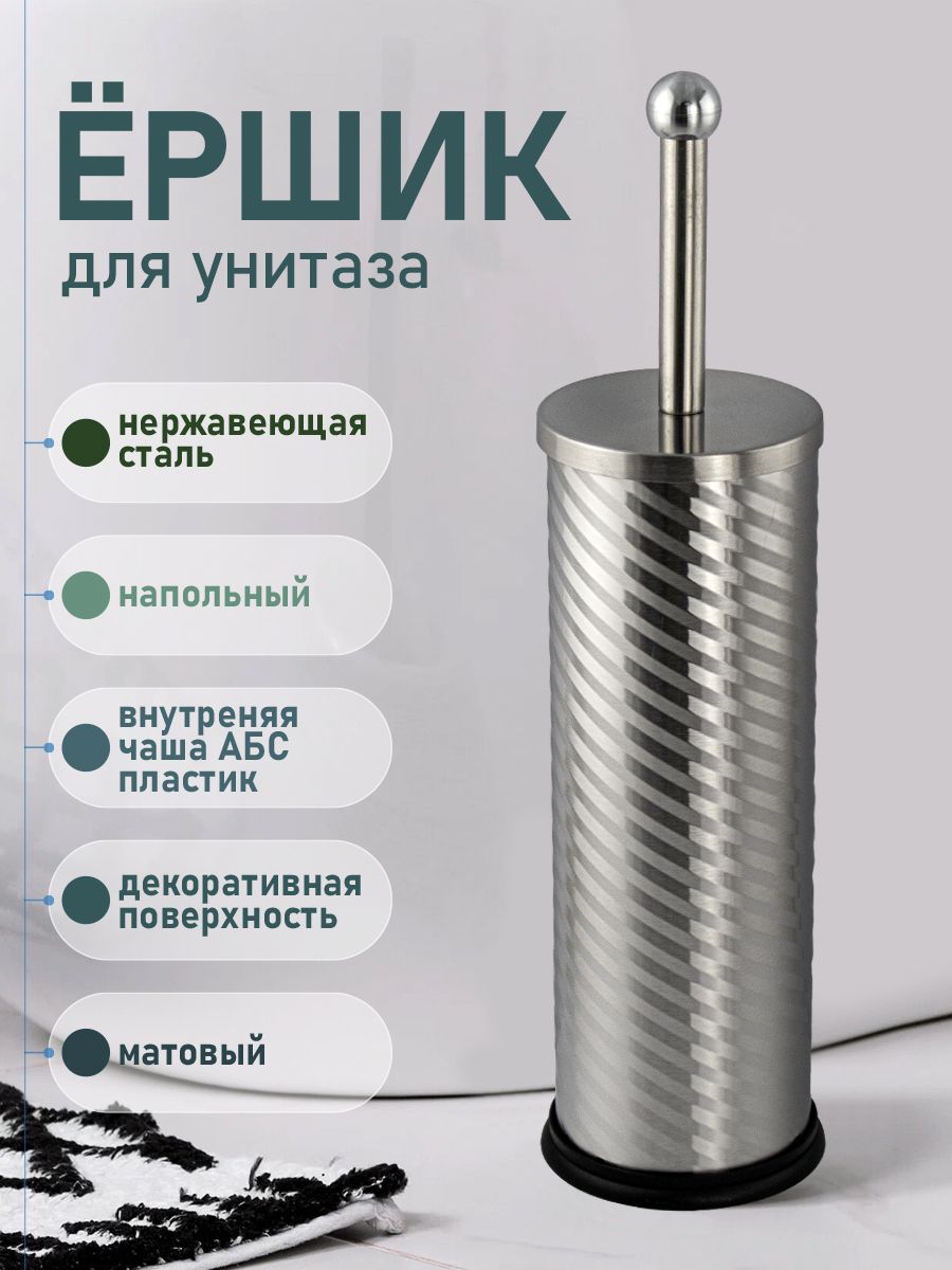 Ёршик круглый, винтообразный из нержавеющей стали марки 410, напольный, необходимый аксессуар любой туалетной комнаты. Приспособление обеспечит порядок и правильное хранение гигиенических принадлежностей. Изделие выполнено из с металла с сатиновым покрытием. Жесткая щетина ерша гарантирует отличный результат очистки санузлов. Такое сочетание материалов делает конструкцию прочной и долговечной. Ёршик легко устанавливается на пол. Имеет специальное покрытие, которое защищает изделие от влаги и придает ему стильный внешний вид. Габаритные размеры: высота 385 мм, высота колбы 265 мм, диаметр 95 мм. Вес - 0,400 кг, объём - 0,00345 м3.