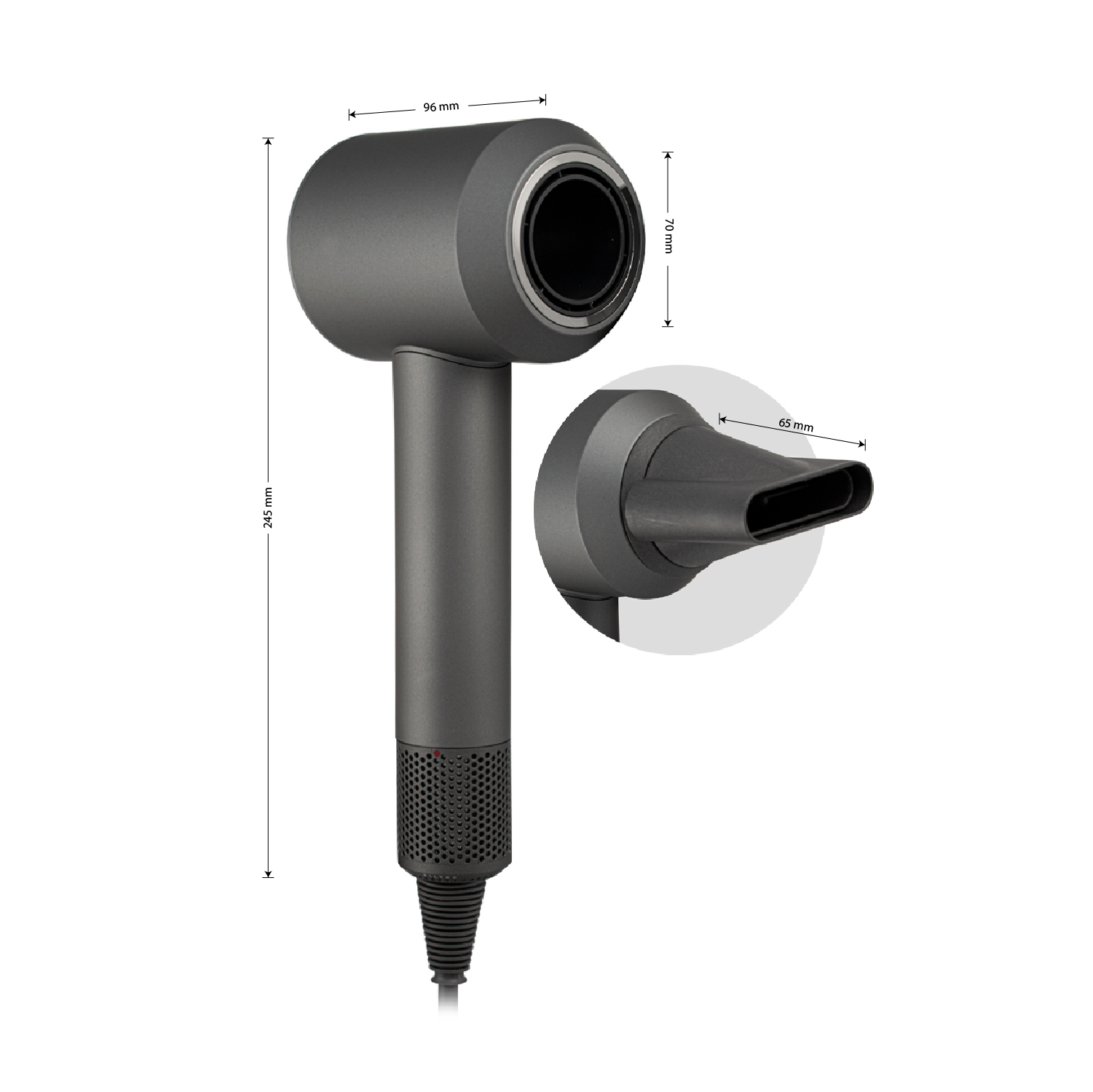 Фен для волос в ванную комнату без креплений, переносной, цвет графит, предназначен для сушки волос потоком теплого воздуха. 3 скорости работы. 3 температурных режима. В комплекте концентратор, который крепится магнитами на основной корпус. Идеально подходит для установки в гостиницах, бассейнах, фитнес-клубах, в раздевалках складских и производственных комплексов. Так же может использоваться в личных ванных комнатах. Электрический фен позволяет комфортно и быстро высушить волосы после душа. Материал корпуса выполнен из высокопрочного пластика АБС, устойчивого к механическим повреждениям, перепадам температуры и коррозии. Поэтому электроприбор подходит не только для домашнего, но и для общественного использования – бассейны, сауны, душевые в спортивных залах. Благодаря небольшому весу феном удобно пользоваться. 220В.Мощность 1600 W Габаритные размеры: длина 96 мм, высота 245 мм, диаметр фена 70 мм, длина пружинного шнура 160 cм. Вес - 1,0 кг, объем - 0,005 м3.