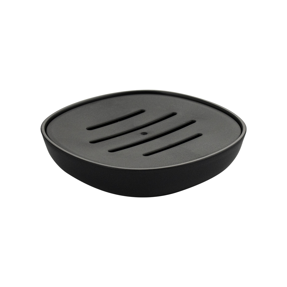 Мыльница для мыла настольная — необходимый аксессуар любой ванной комнаты и кухни. Приспособление обеспечит порядок и правильное хранение гигиенических принадлежностей. Изделие выполнено из пластика АБС с чёрным матовым покрытием. Такое сочетание материалов делает конструкцию прочной и долговечной. Гармоничный дизайн и чёрный цвет отлично впишется в любой интерьер. Изделие имеет специальное покрытие, которое защищает его от влаги и придает ему дизайнерский внешний вид. В коллекции представлены: дозатор для мыла, мыльница, напольный ершик для унитаза, стакан для зубных щеток. Габаритные размеры: высота 25 мм, ширина 110 мм, глубина 110 мм. Вес - 0,100 кг, объём - 0,00056 м3