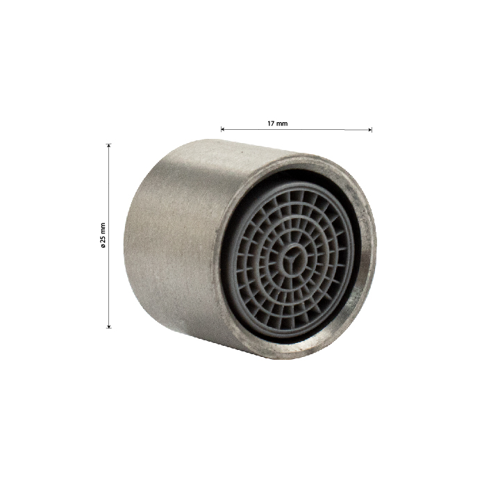Аэратор из нержавеющей стали наружный / внутрен. резьба, предназначен для ограничения расхода воды. Инновационная технология позволяет экономить до 50% воды при пользовании сантехническими приборами, не ухудшая их пользовательских качеств. Производительность: 5,7 л/мин при 3 бар. Габаритные размеры: ширина 17 мм, диаметр 25 мм. Вес - 0,350 кг, объём - 0,00001 м3. Комплект: аэратор, уплотнения.