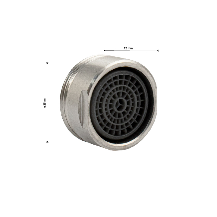 Аэратор из нержавеющей стали внутренний / наруж. резьба, предназначен для ограничения расхода воды. Инновационная технология позволяет экономить до 50% воды при пользовании сантехническими приборами, не ухудшая их пользовательских качеств. Производительность: 5,7 л/мин при 3 бар. Габаритные размеры: длина 12 мм, диаметр 25 мм. Вес - 0,350 кг, объём - 0,00001 м3. Комплект: аэратор, уплотнения.