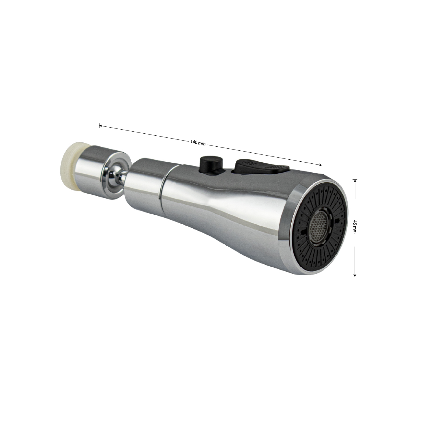 Аэратор двухрежимный, хромированный, c шарниром, предназначен для ограничения расхода воды. Пластик АБС. Инновационная технология позволяет экономить до 50% воды при пользовании сантехническими приборами, не ухудшая их пользовательских качеств. Производительность: 5,7 л/мин при 3 бар. Габаритные размеры: длина 140 мм, диаметр 45 мм. Вес - 0.10 кг, объём - 0.00047 м3. Комплект: аэратор, уплотнения.