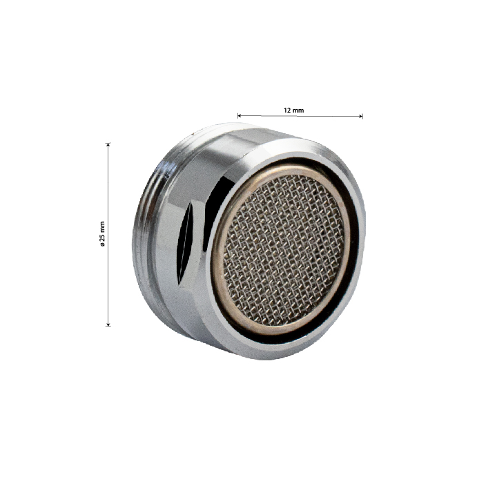 Аэратор металлический внутренний / наруж. резьба, предназначен для ограничения расхода воды, хромированный. Инновационная технология позволяет экономить до 50% воды при пользовании сантехническими приборами, не ухудшая их пользовательских качеств. Производительность: 5,7 л/мин при 3 бар. Габаритные размеры: длина 12 мм, диаметр 25 мм. Вес - 0,350 кг, объём - 0,00001 м3. Комплект: аэратор, уплотнения.