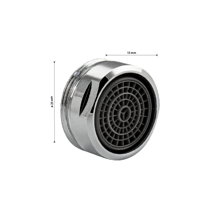 Аэратор металлический внутренний / наруж. резьба, предназначен для ограничения расхода воды, хромированный. Инновационная технология позволяет экономить до 50% воды при пользовании сантехническими приборами, не ухудшая их пользовательских качеств. Производительность: 5,7 л/мин при 3 бар. Габаритные размеры: длина 15 мм, диаметр 25 мм. Вес - 0,350 кг, объём - 0,00001 м3. Комплект: аэратор, уплотнения.