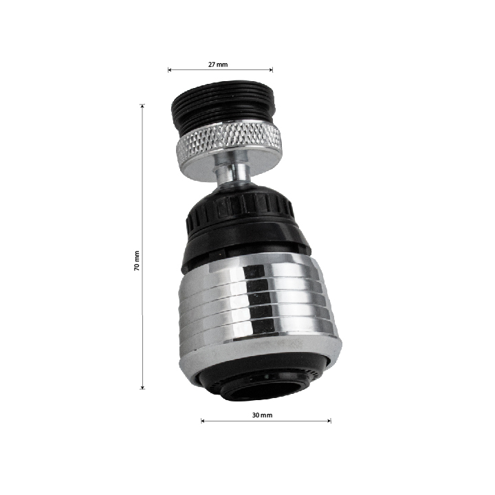 Аэратор двухрежимный, хромированный, поворотный, на шарнире, предназначен для ограничения расхода воды. Пластик АБС. Инновационная технология позволяет экономить до 50% воды при пользовании сантехническими приборами, не ухудшая их пользовательских качеств. Производительность: 5,7 л/мин при 3 бар. Габаритные размеры: длина 70 мм, диаметр 30 мм. Вес - 0,054 кг, объём - 0,00029 м3. Комплект: аэратор, уплотнения.